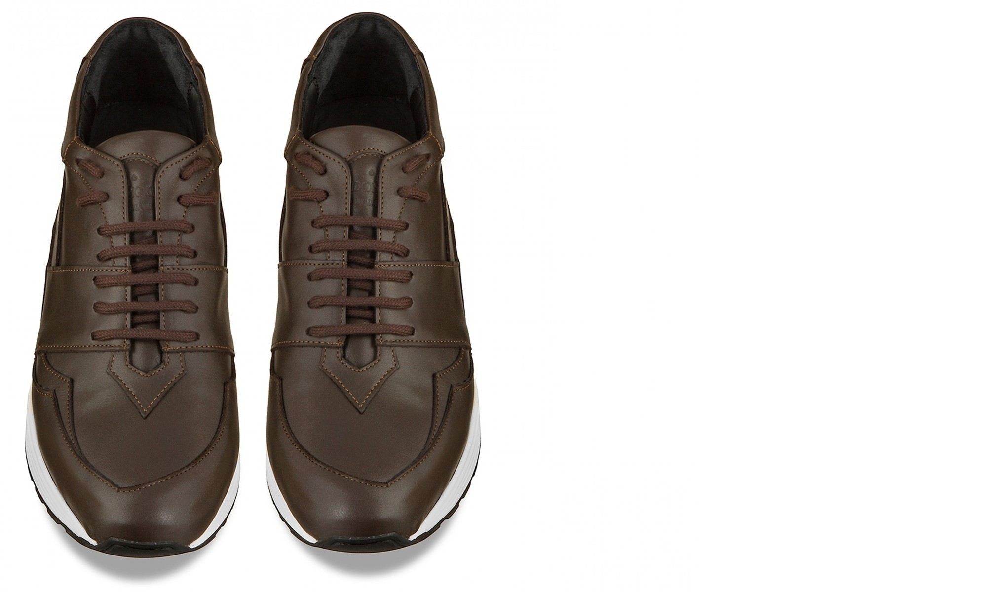 Sporty chic elevator sneakers in brown full-grain leather and white striped sole in ultra-light rubber.
