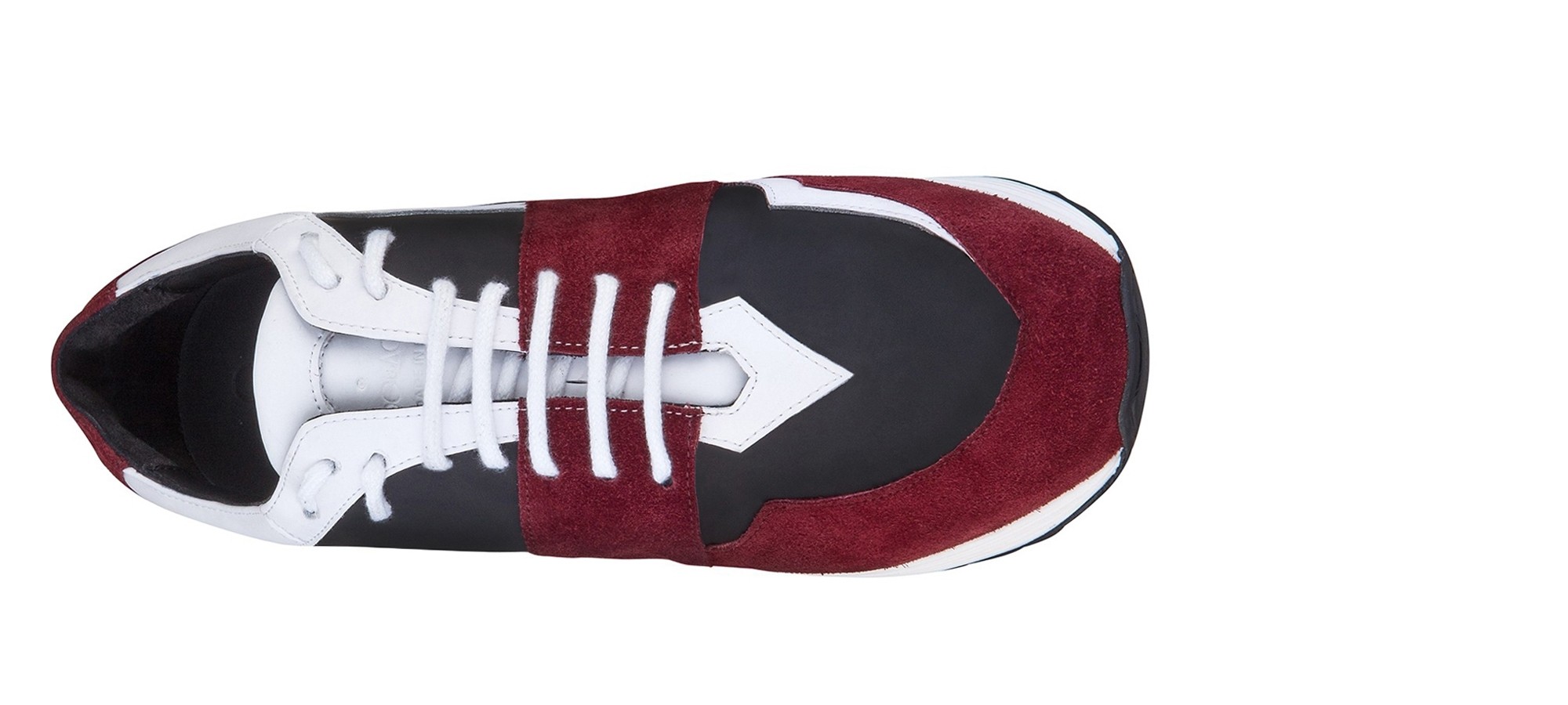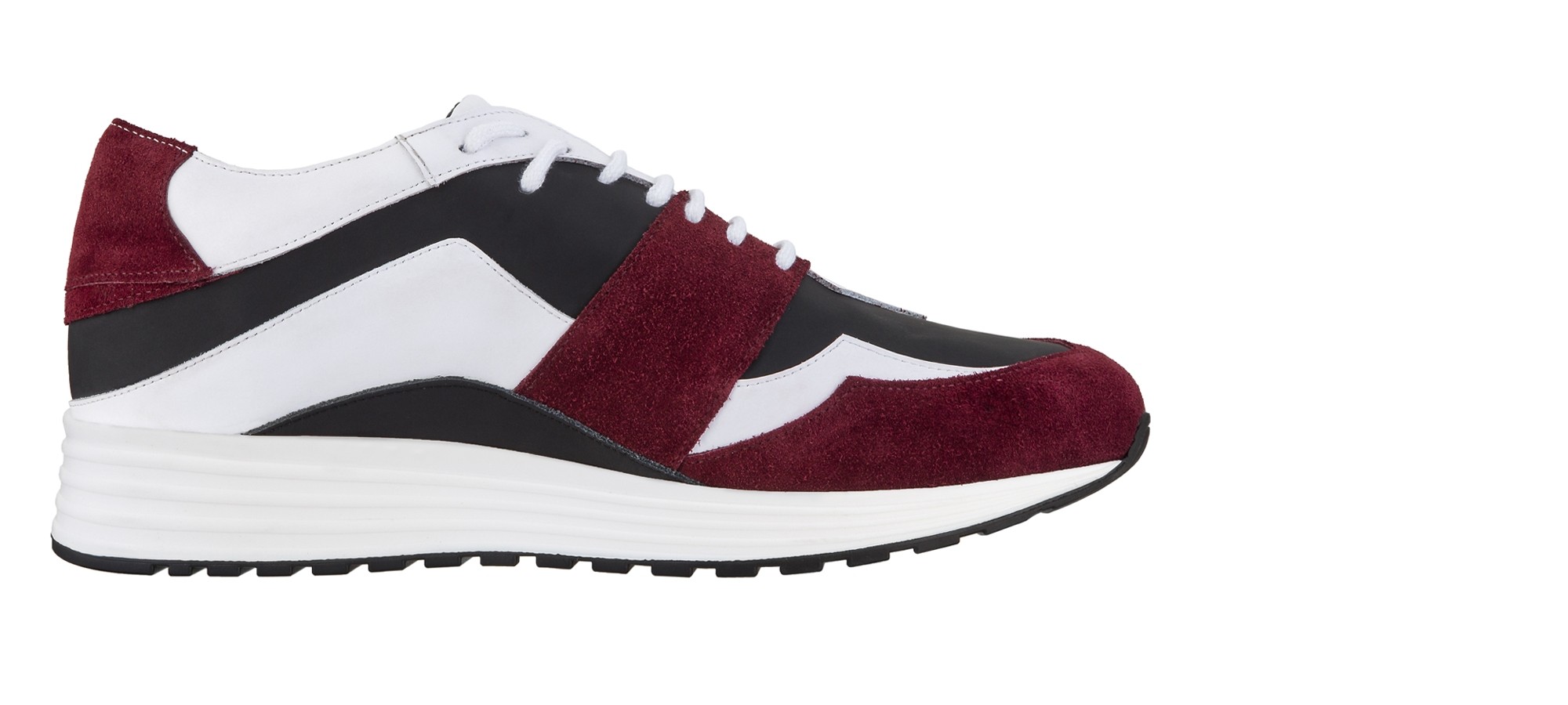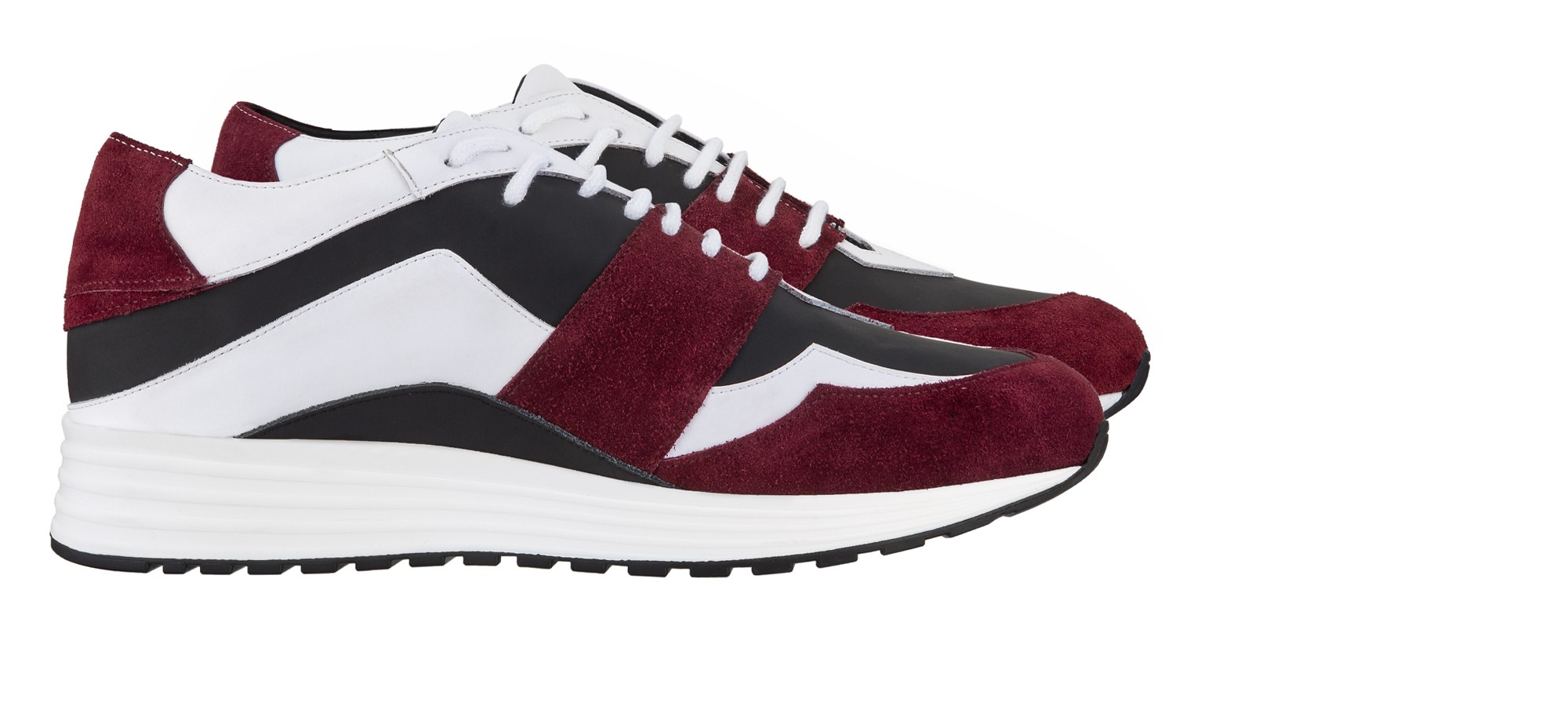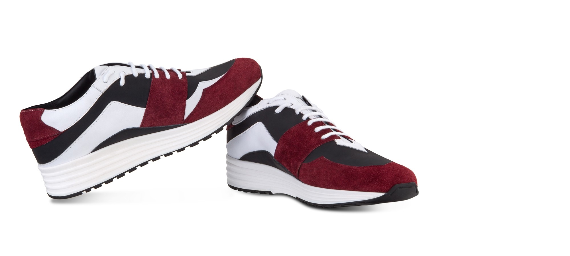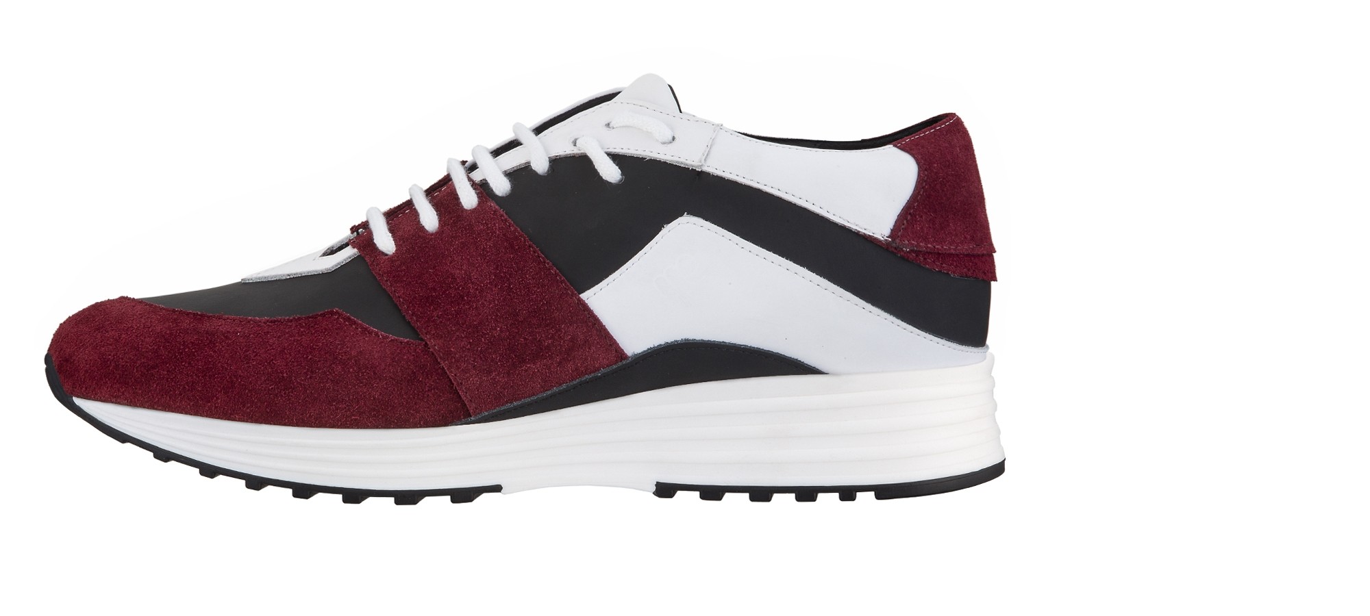 With a rubber sole, this elevator model is made with four different types of leather: burgundy suede, black rubber-effect full-grain leather, white calfskin, and black full-grain details. Versatile, it’s ideal for any casual chic look and gives up to 3.15 inches of extra height. 100% handmade in Italy.