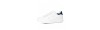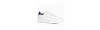 Low-top elevator sneaker featuring upper in white full-grain leather enriched with cobalt blue suede details on the heel tab. The white sole is made of natural rubber.