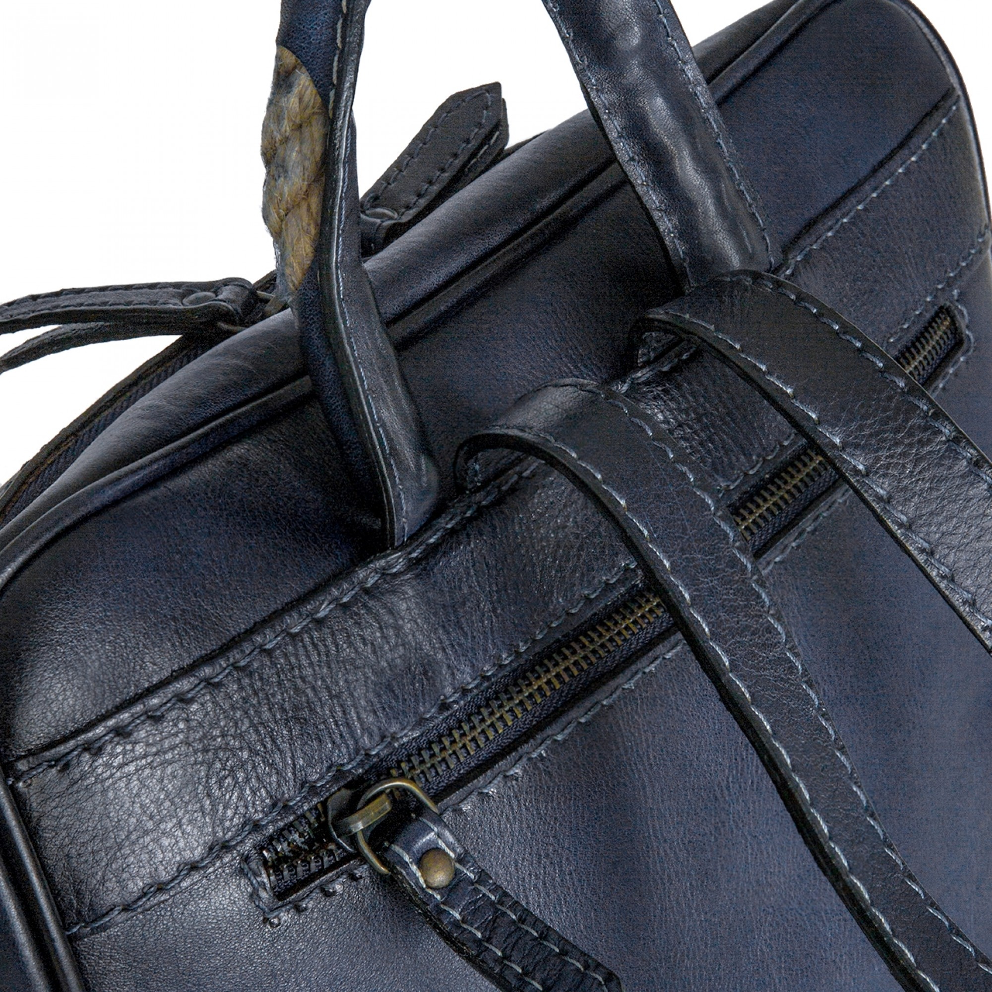Elegance and comfort: laptop backpack made of vegetable tanned calf leather in a dark blue color. The traditional tanning system maintains the beauty of leather over the years, enhancing its stylish artisanal character.