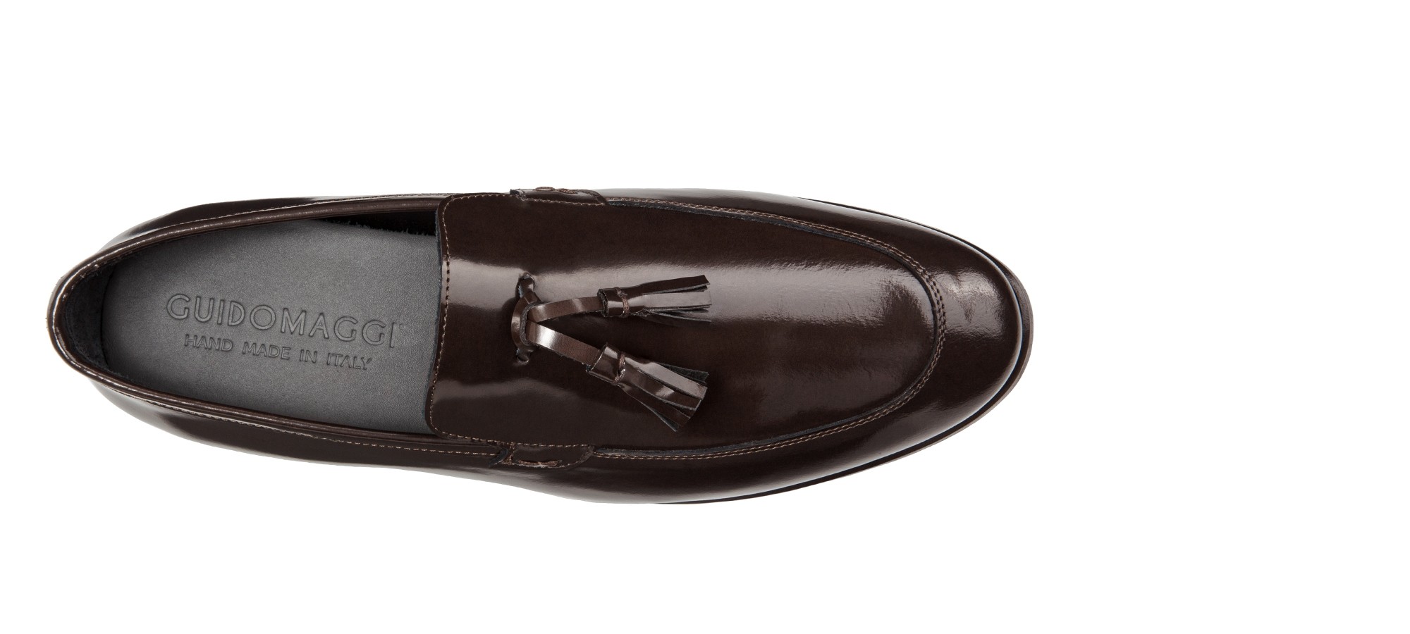 A classic elevator shoe, always refined but in step with the times. The loafer with tassels from the new GuidoMaggi collection has a clean and captivating line.