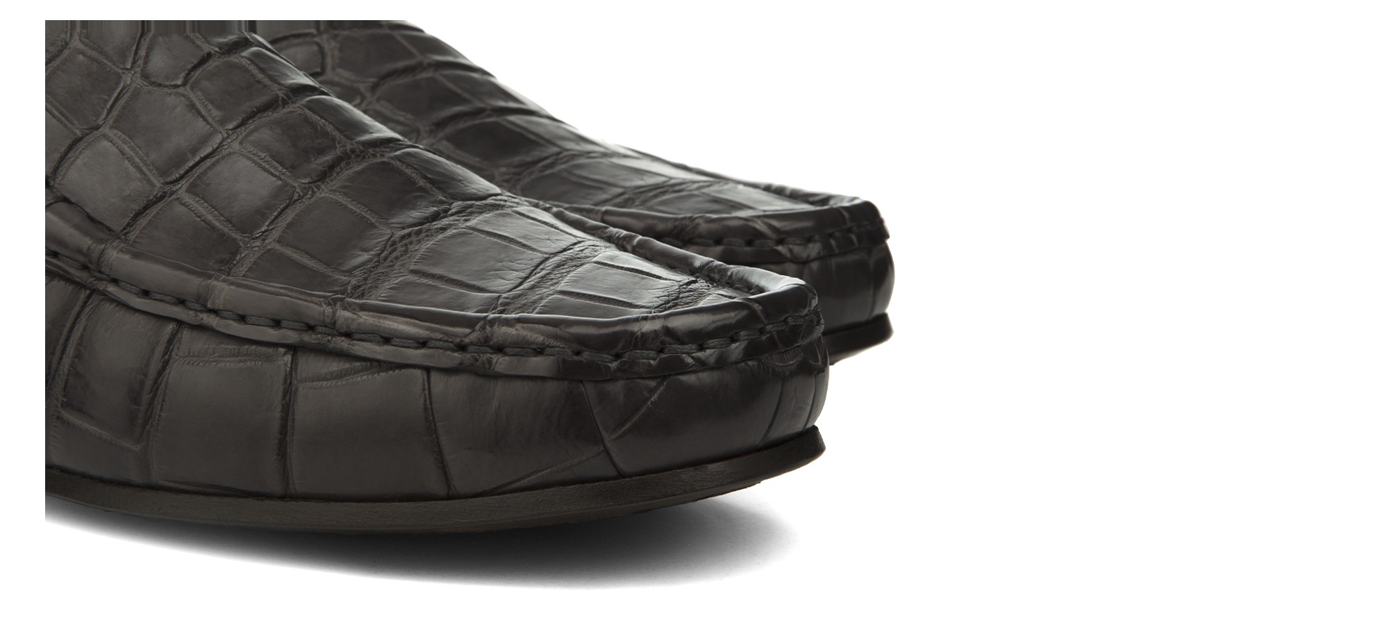 Elevator loafers with a great fit, suitable for all the chic outfits of the season. A sophisticated plain loafer in dark brown Hermès crocodile, rigorously hand-stitched using two whole hides. The sole is in 100% Italian leather.