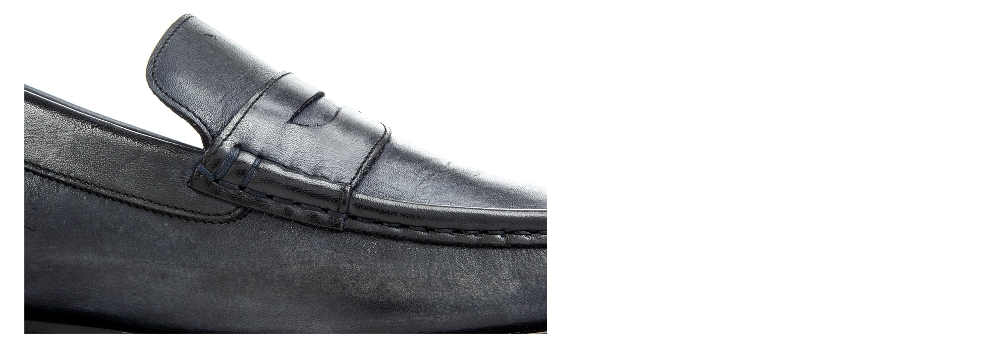 Elevator loafers with clamp in dark blue hand-buffed calf leather with delicate colour reflections and genuine leather sole