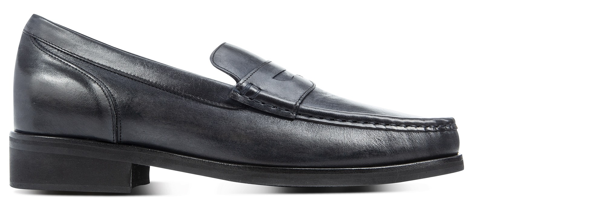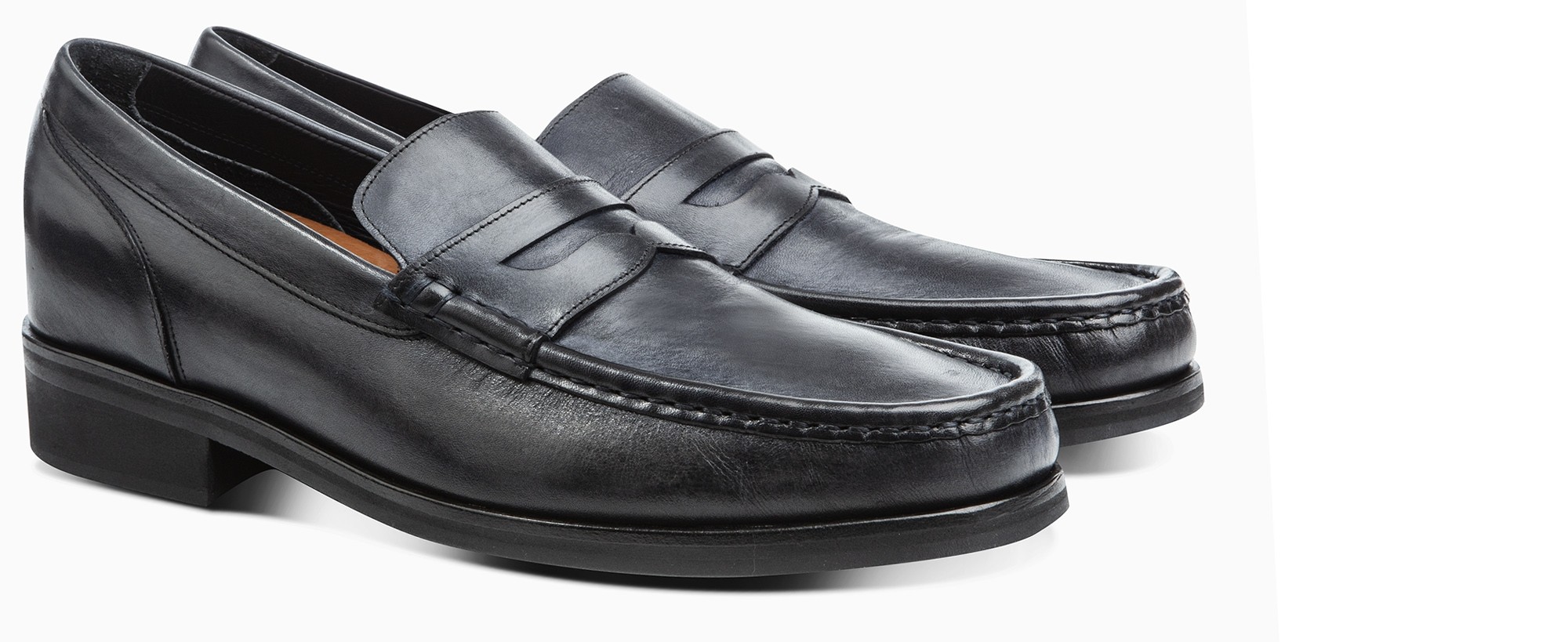 A handcrafted penny loafer with an inner elevator system that can discreetly increase the total height by 2.6 inches in total comfort