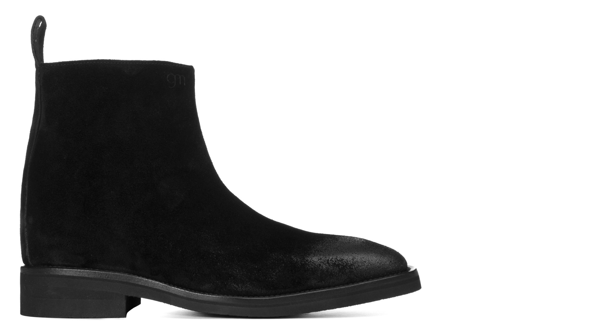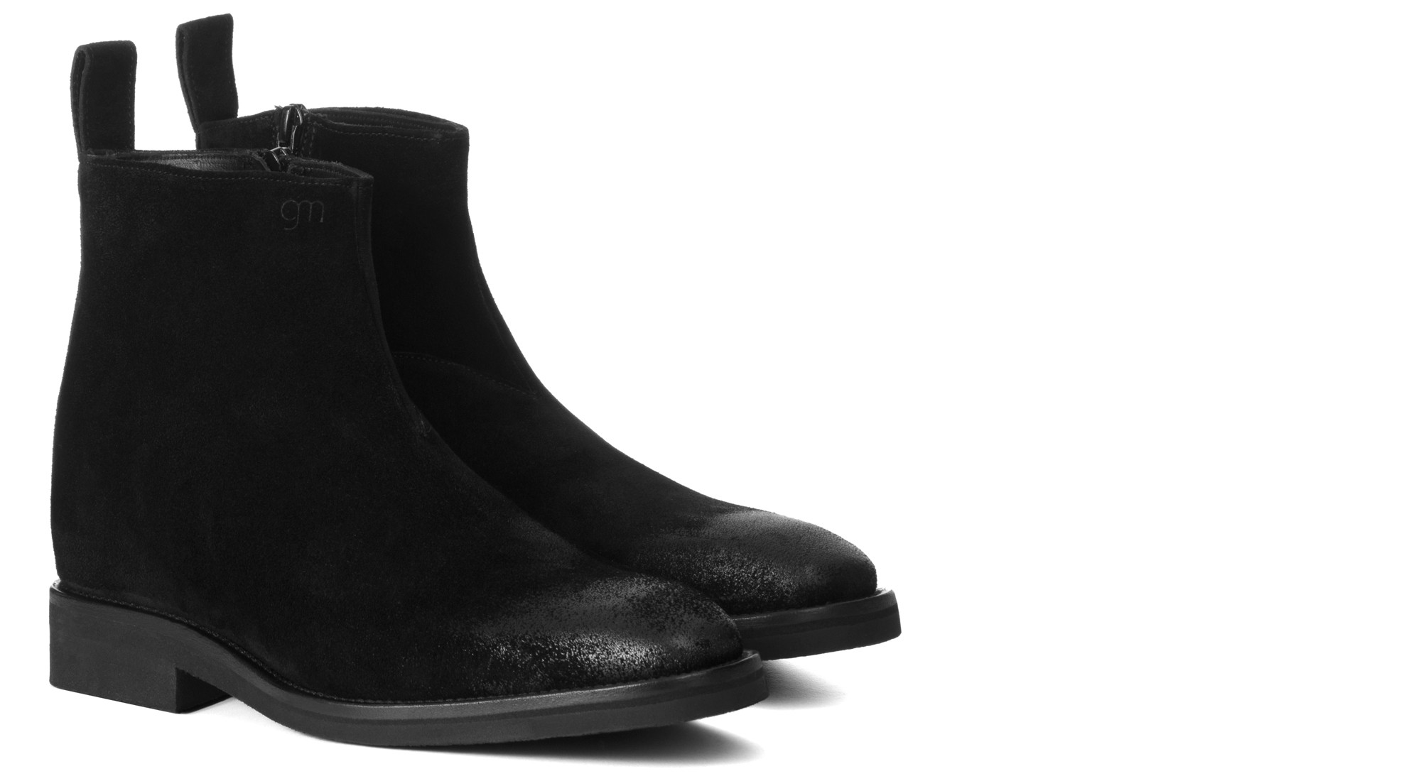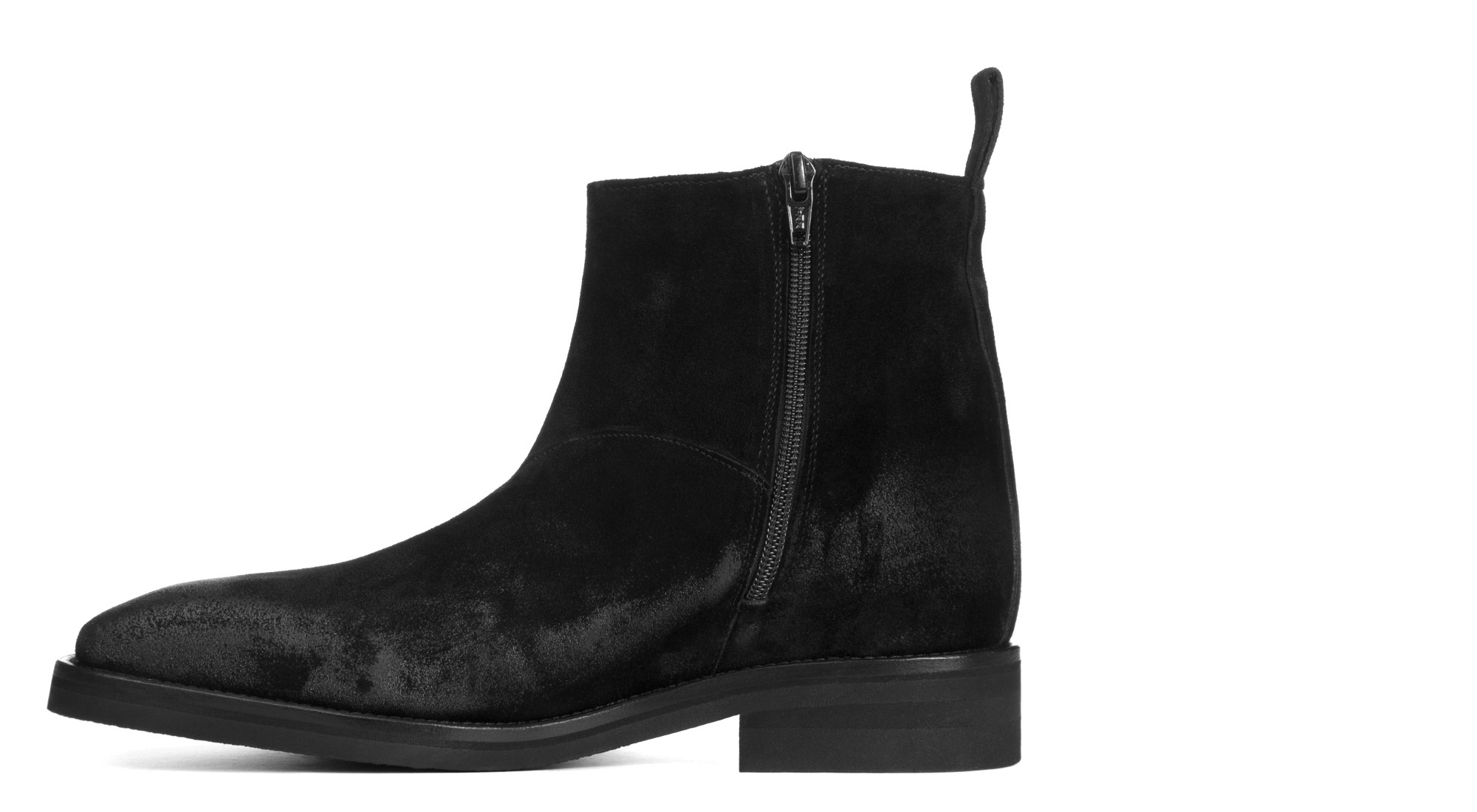 Elevating ankle boot with convenient side zip and pull tab. The upper is in waxed leather, with an exclusive aged effect on the toe.
