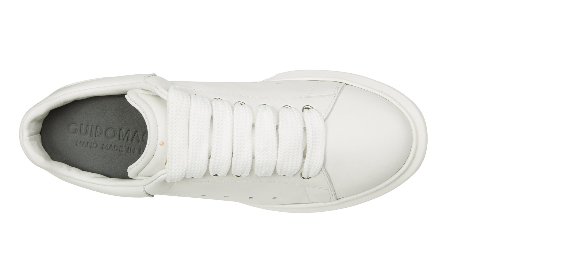 GuidoMaggi oversized sneakers with an iconic and timeless silhouette. Handmade in Italy from the finest full-grain leather, they feature a thick rubber sole with superior cushioning and hand-stitched detailing for long-lasting comfort.
