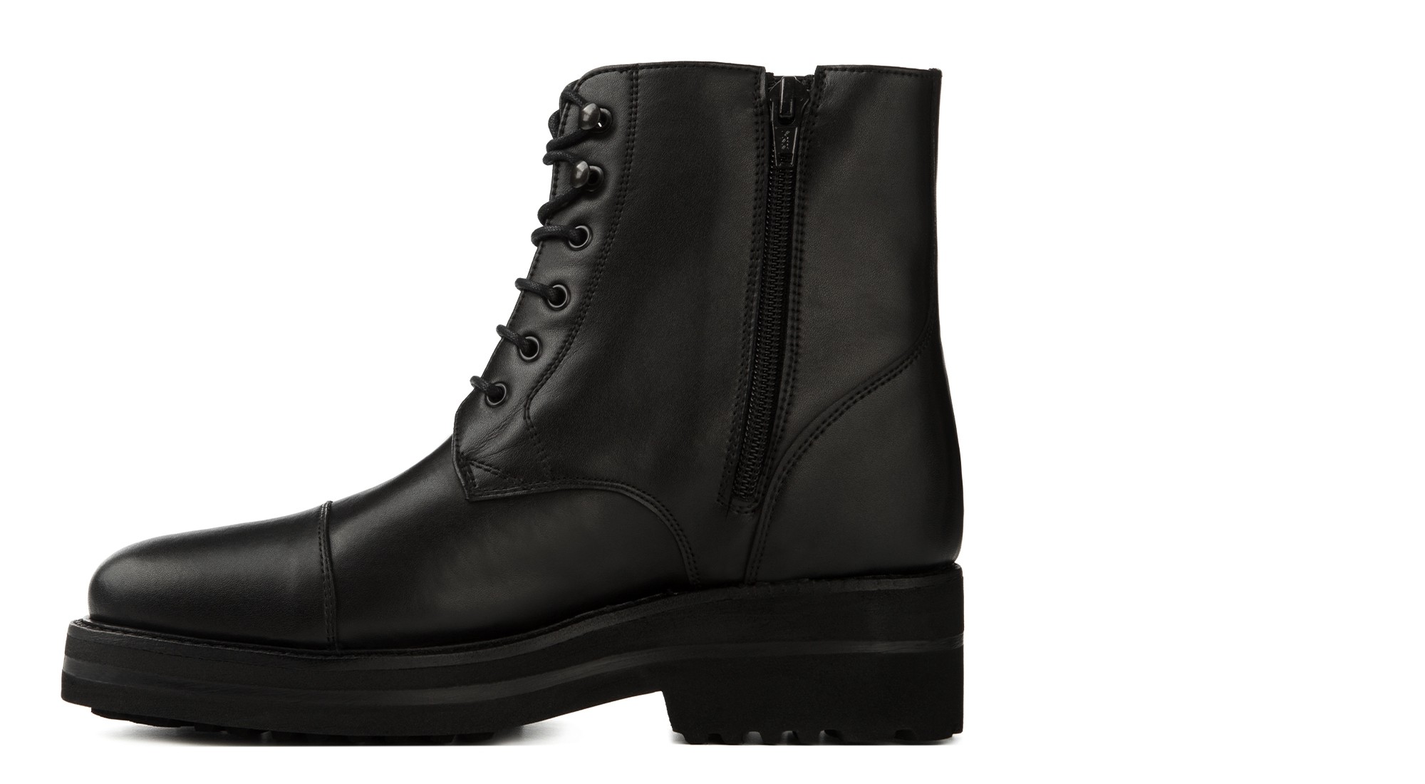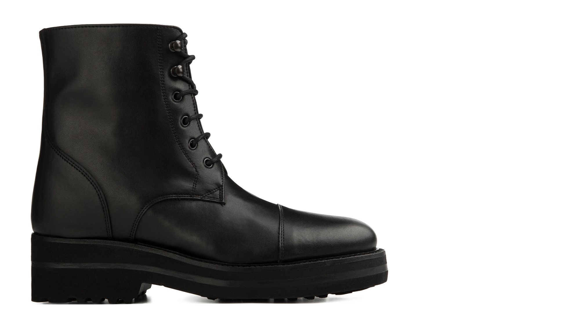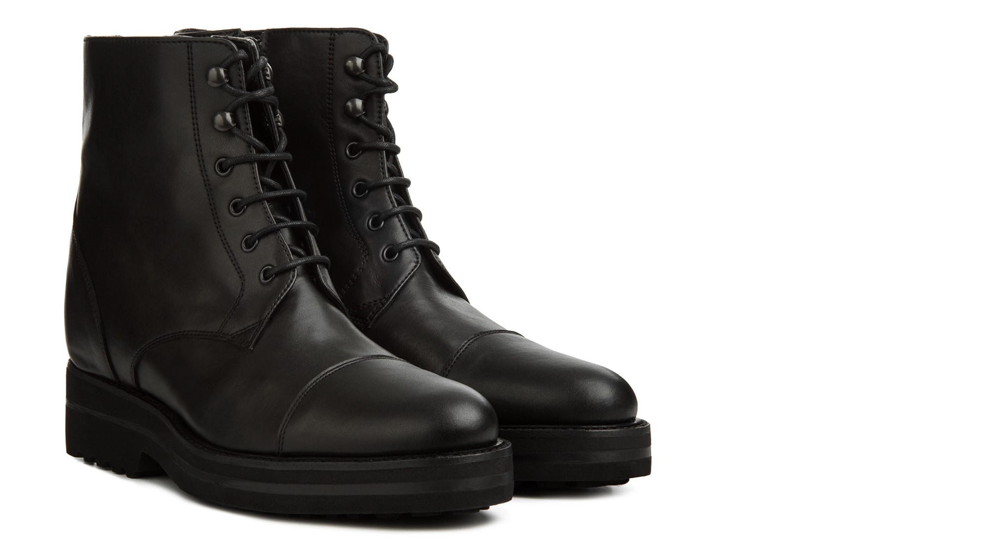 Elegant handcrafted elevator Derby boot, made from premium full-grain Tuscan leather. It features a rounded toe and a thick, super-lightweight sole, entirely reconstructed by hand in natural rubber with a leather welt. A robust yet refined design, perfect for adding character to any outfit.