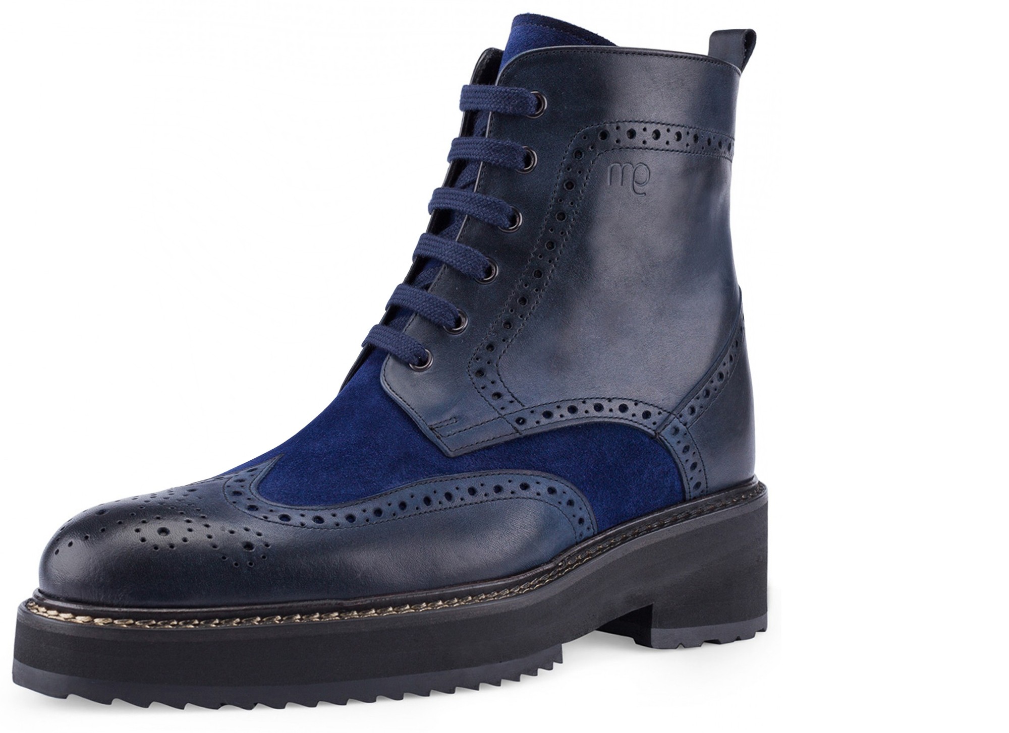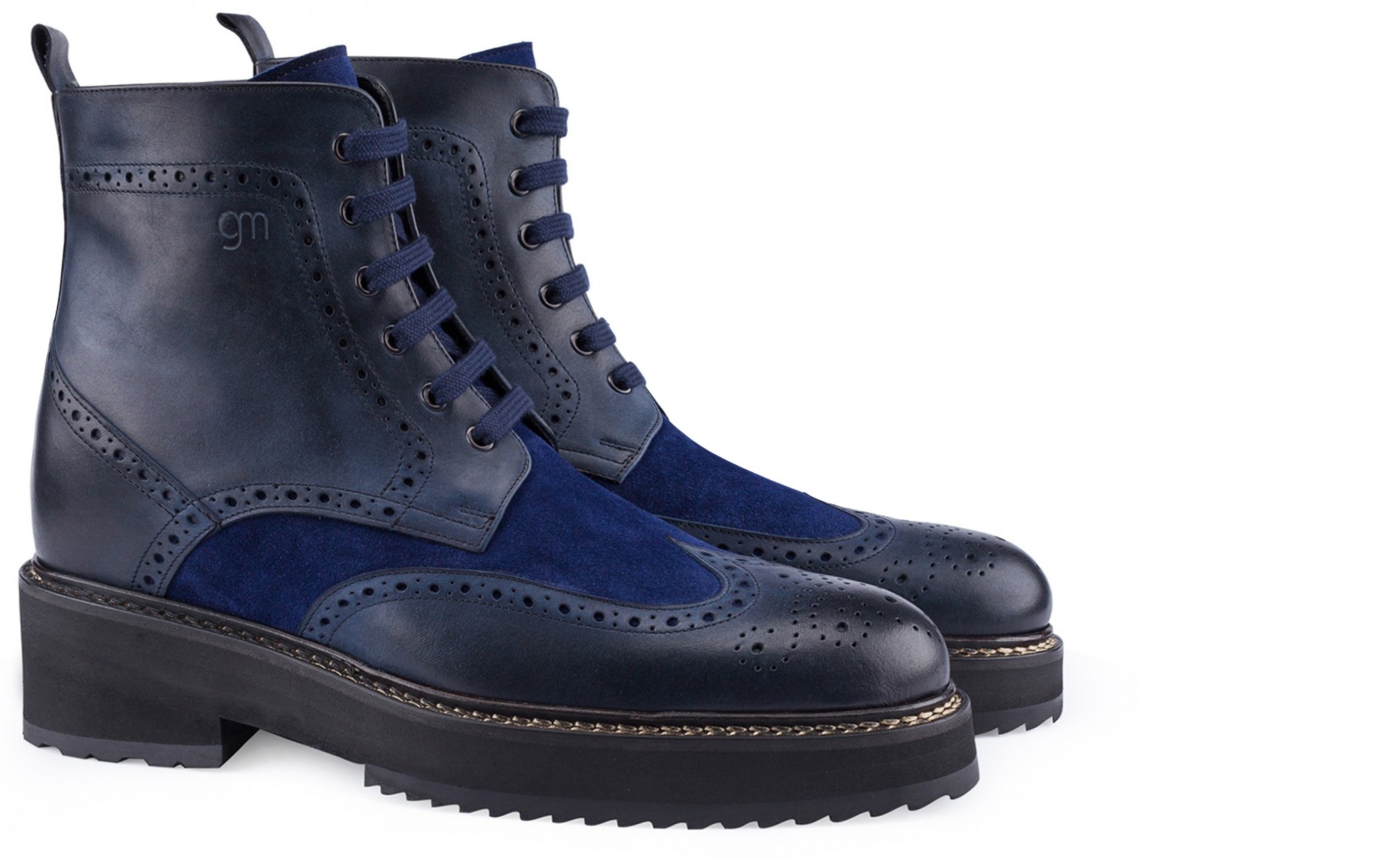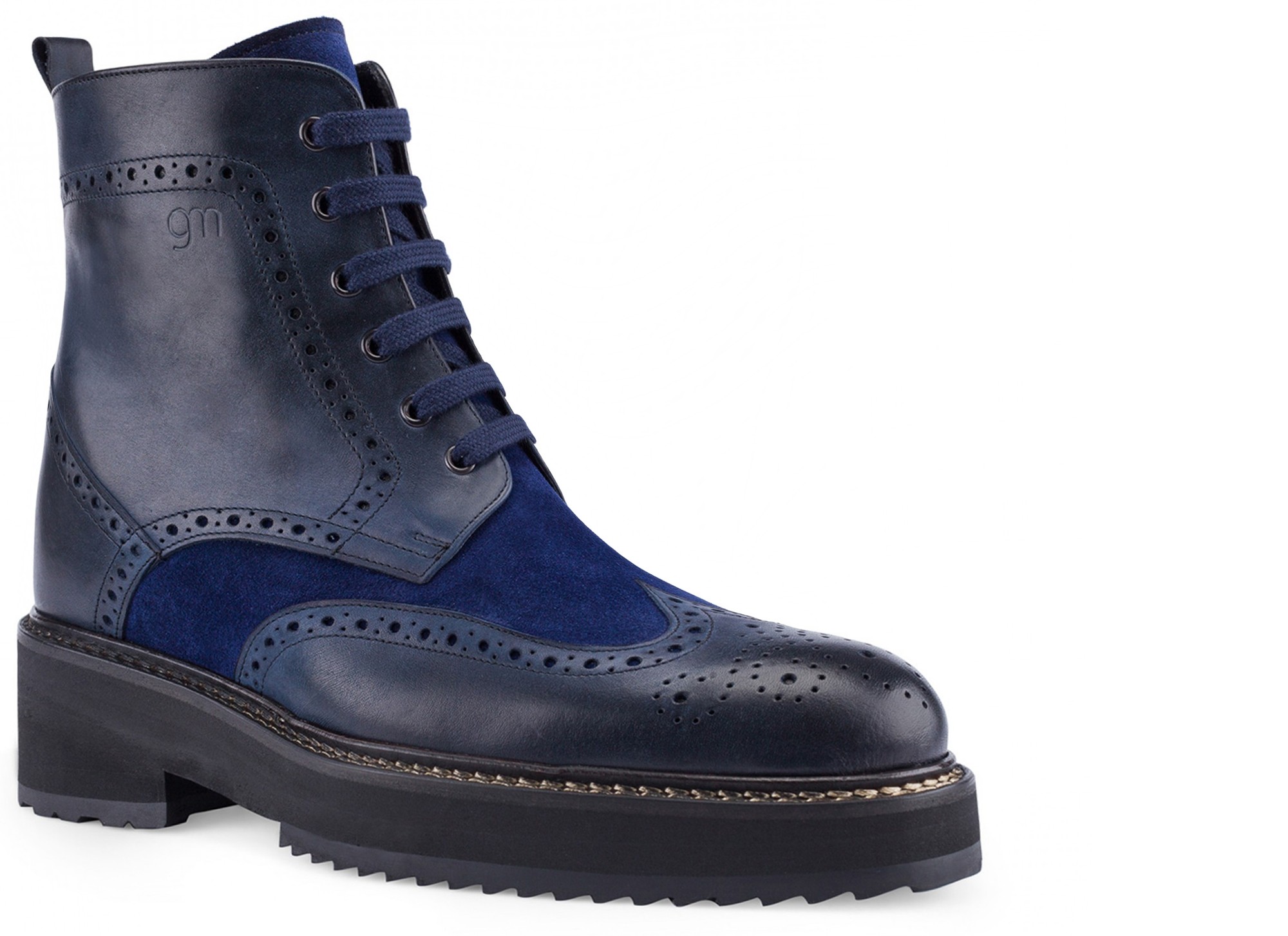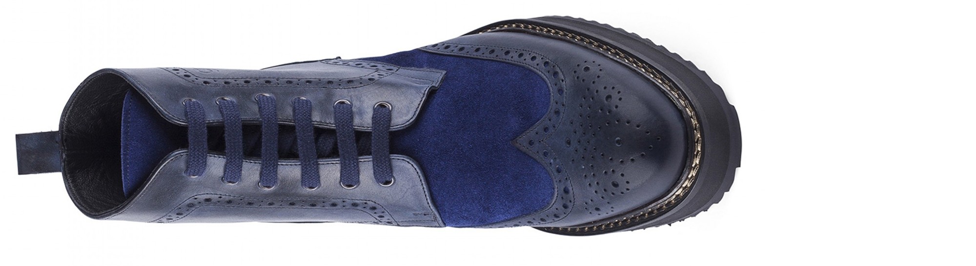 Upper in full grain leather and suede blue burnished. Lining in soft goatskin. Insole and midsole in genuine leather. Cotton waxed shoe laces. Handcrafted, anti-slip rubber sole. Height increase: 4 in(10cm) , 4.3 in(11cm), 5in(12.5cm), 5.1 in(13cm), 6 in (15cm). Hand Made in Italy