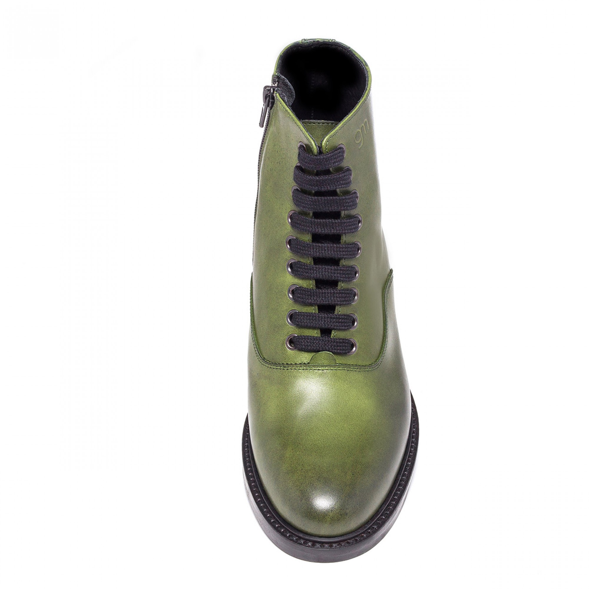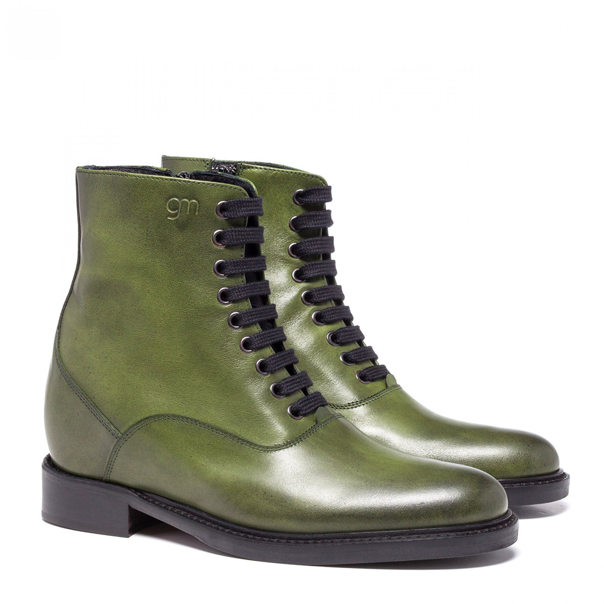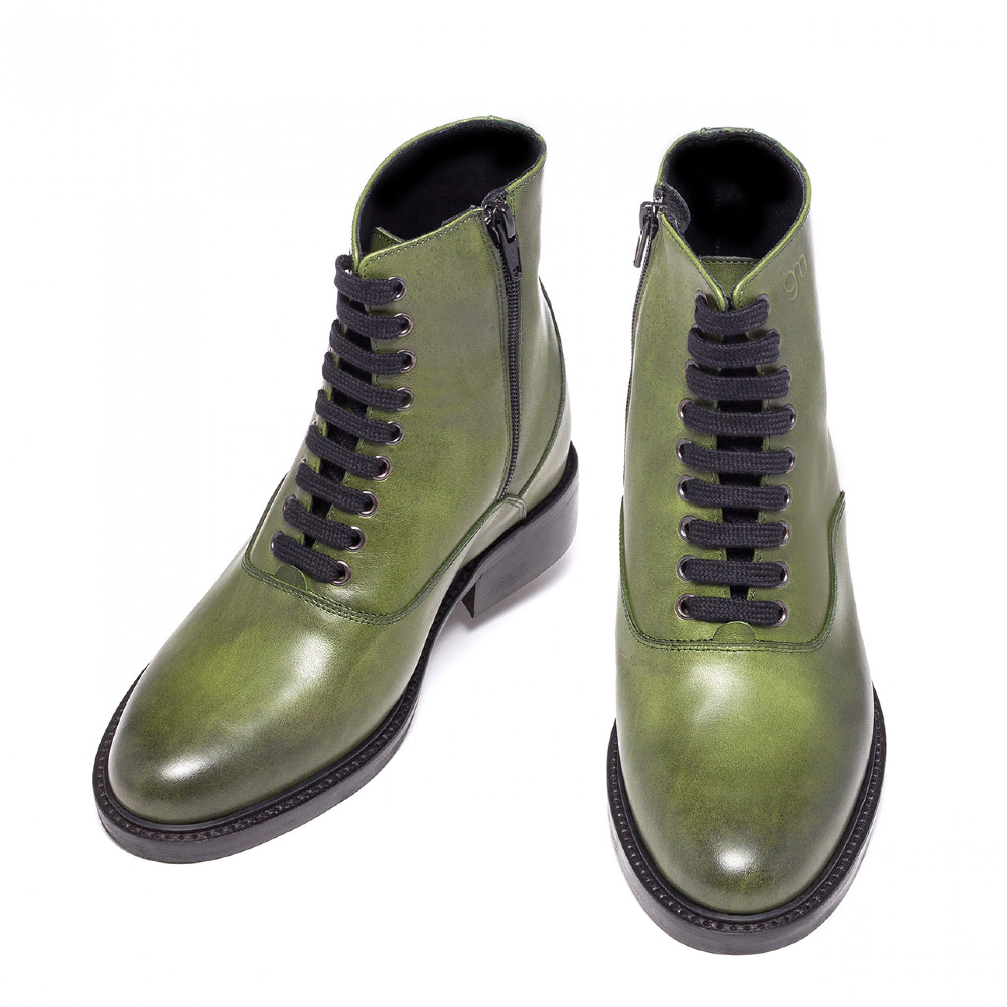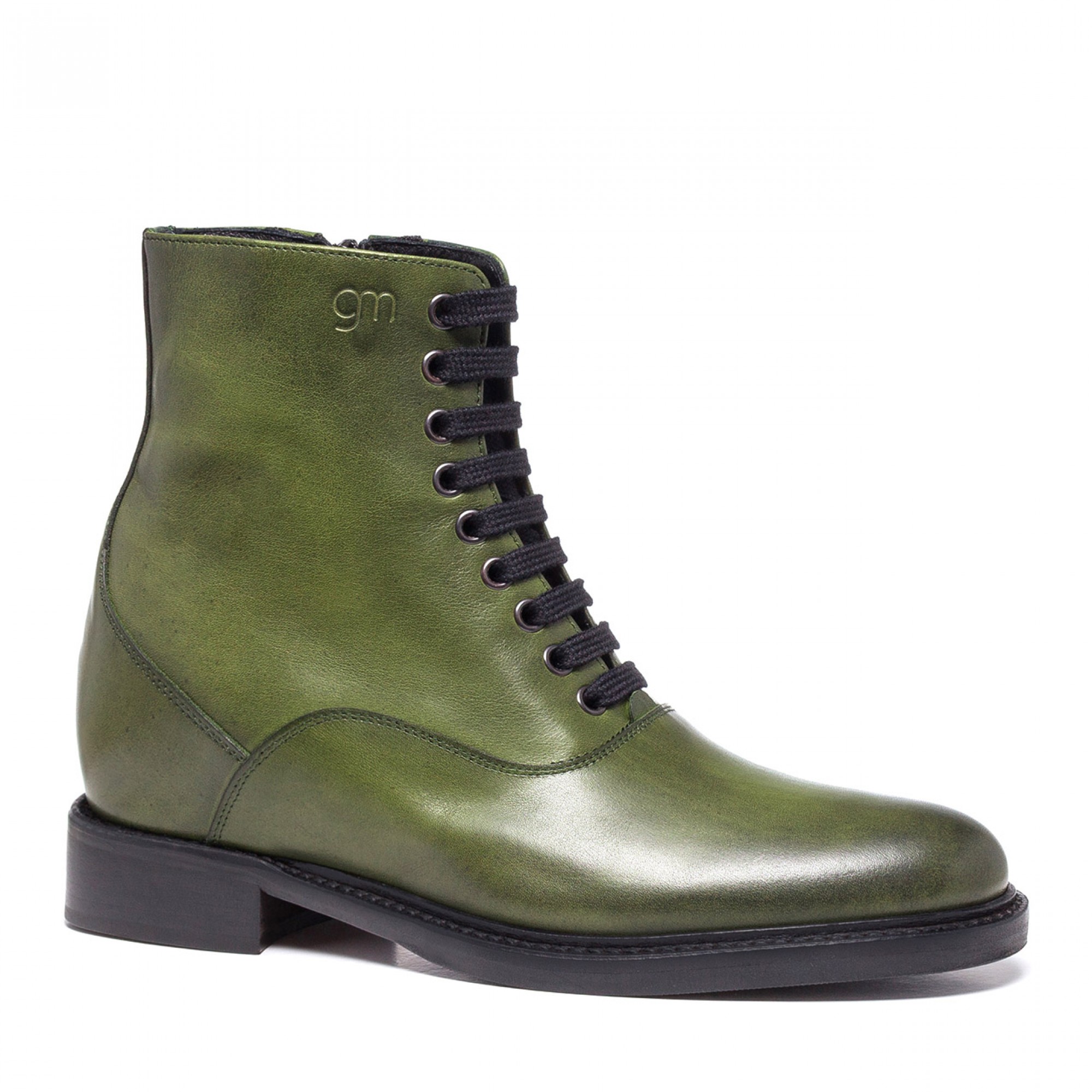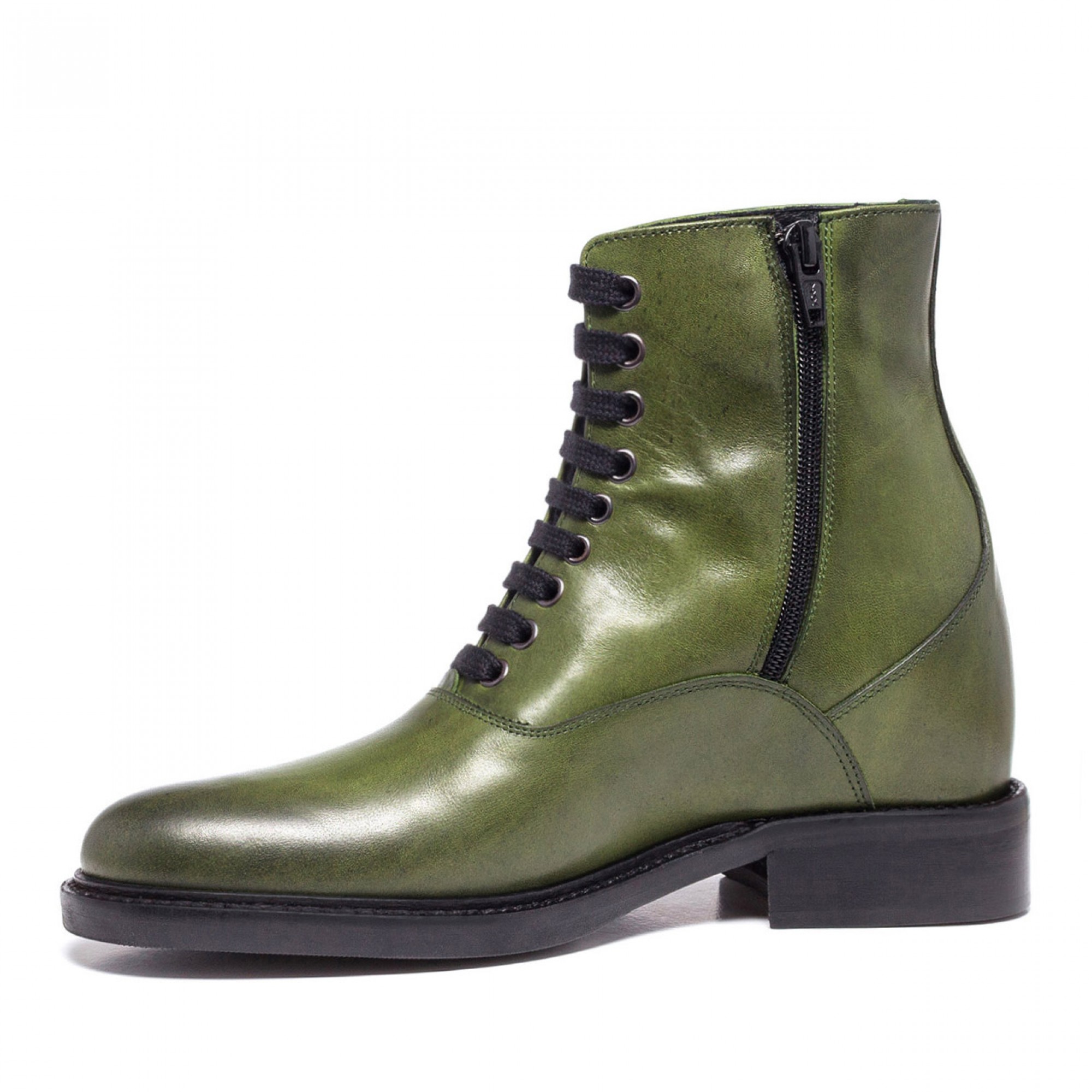 Handcrafted elevator boot with upper in green full grain leather and stiched leather sole with anti slip rubber, able to increase height up to 4 inches.