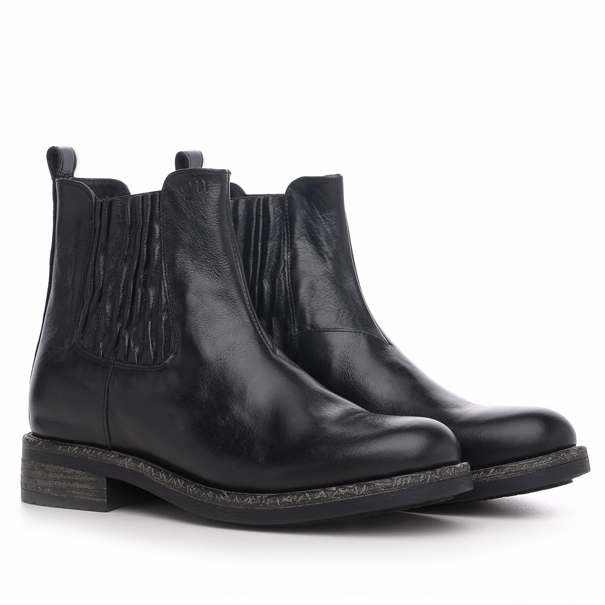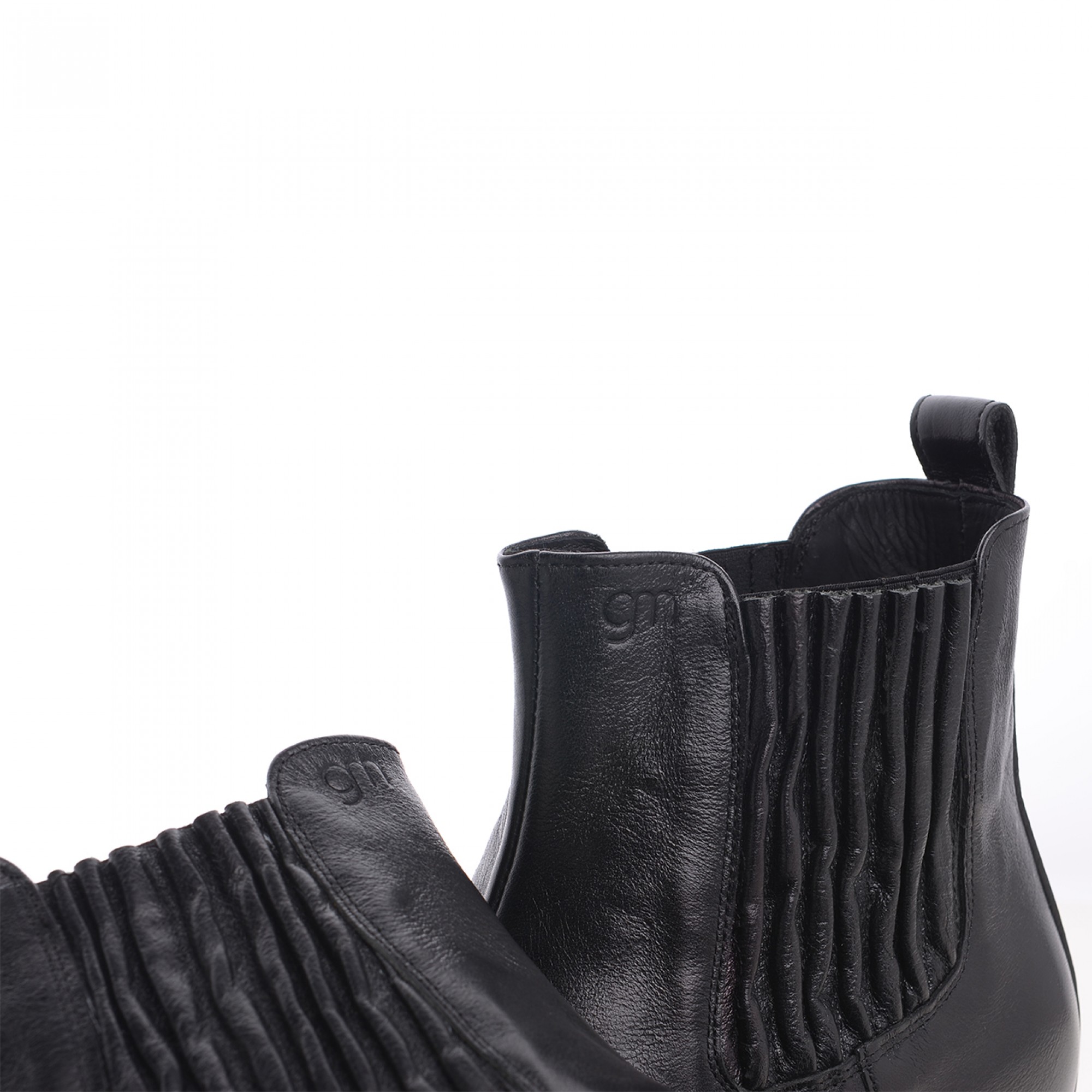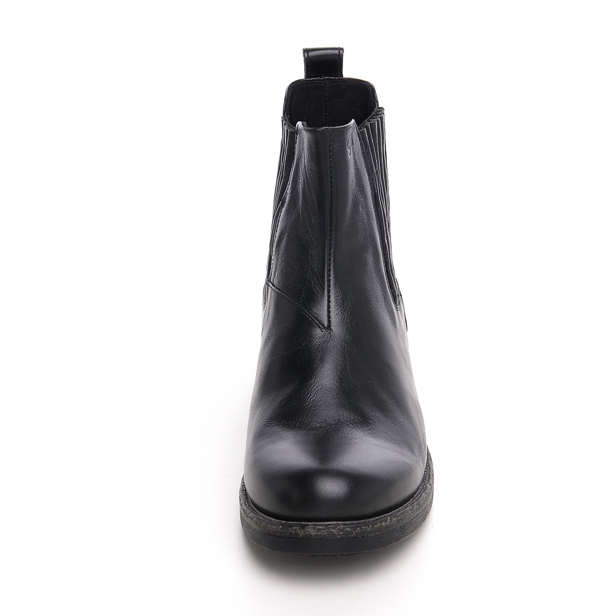 Modern version of the classic Chelsea boot reflecting a refined interpretation of Rock influences. The sleek and slender design is the result of the expertise and creativity of the GM Italian craftsmen, while the upper made of precious full-grain leather is tanned for an aged finish which highlights the dynamic texture as well as the unique wrinkles of the leather covering the side elastic bands.