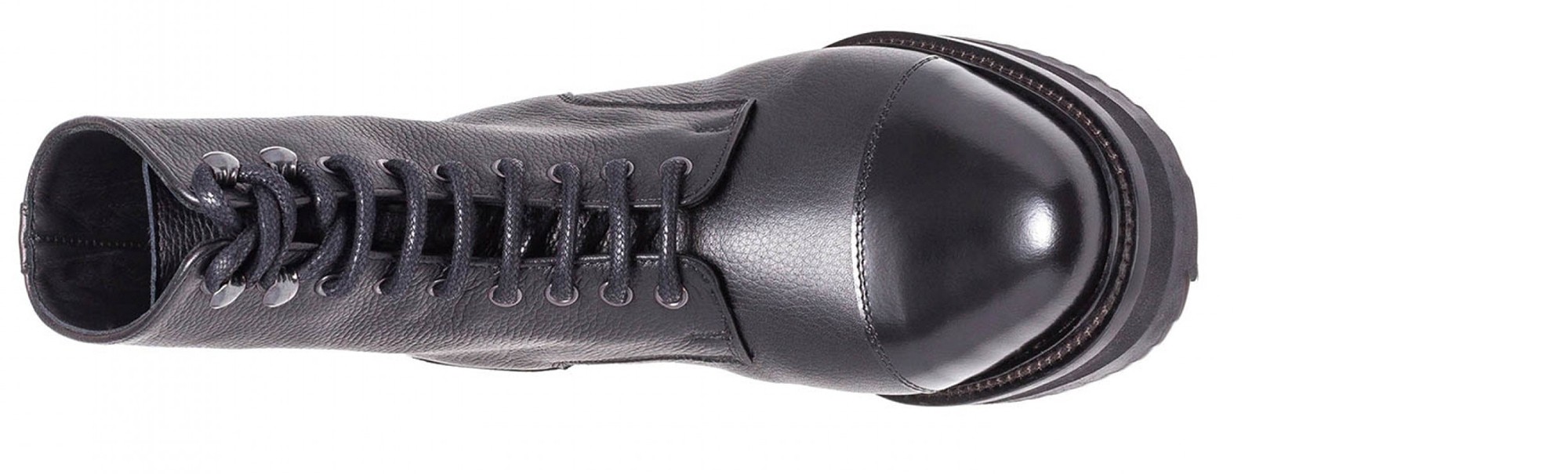 Boots with invisible inner elevator system up to 4 inches (10 cm), featuring upper made of black full grain leather and shiny black calf leather on the toe-cap. The tone-on-tone sole is made of durable super-light rubber.
