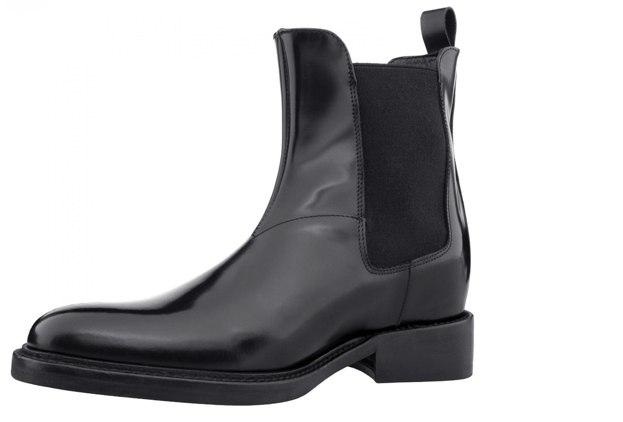 Upper in shiny black calfskin. Lining in soft goatskin. Insole and midsole in genuine leather. Dual elastik silk panel for an easy, comfortable fit. Ankle pull loop. Handcrafted, anti-slip rubber sole. Height increase: 2.4 in(6cm) or 2.75in(7cm) or 3.1 in (8cm). Hand Made in Italy
