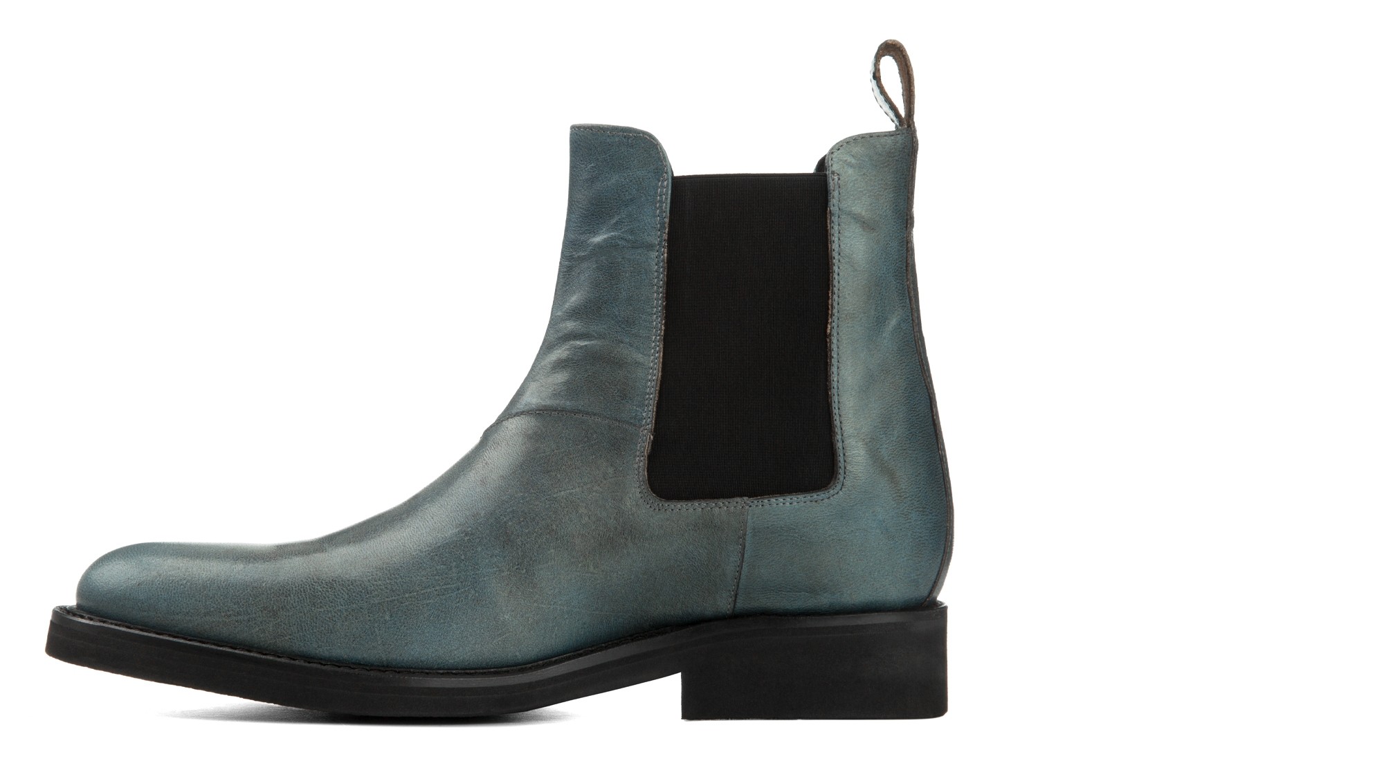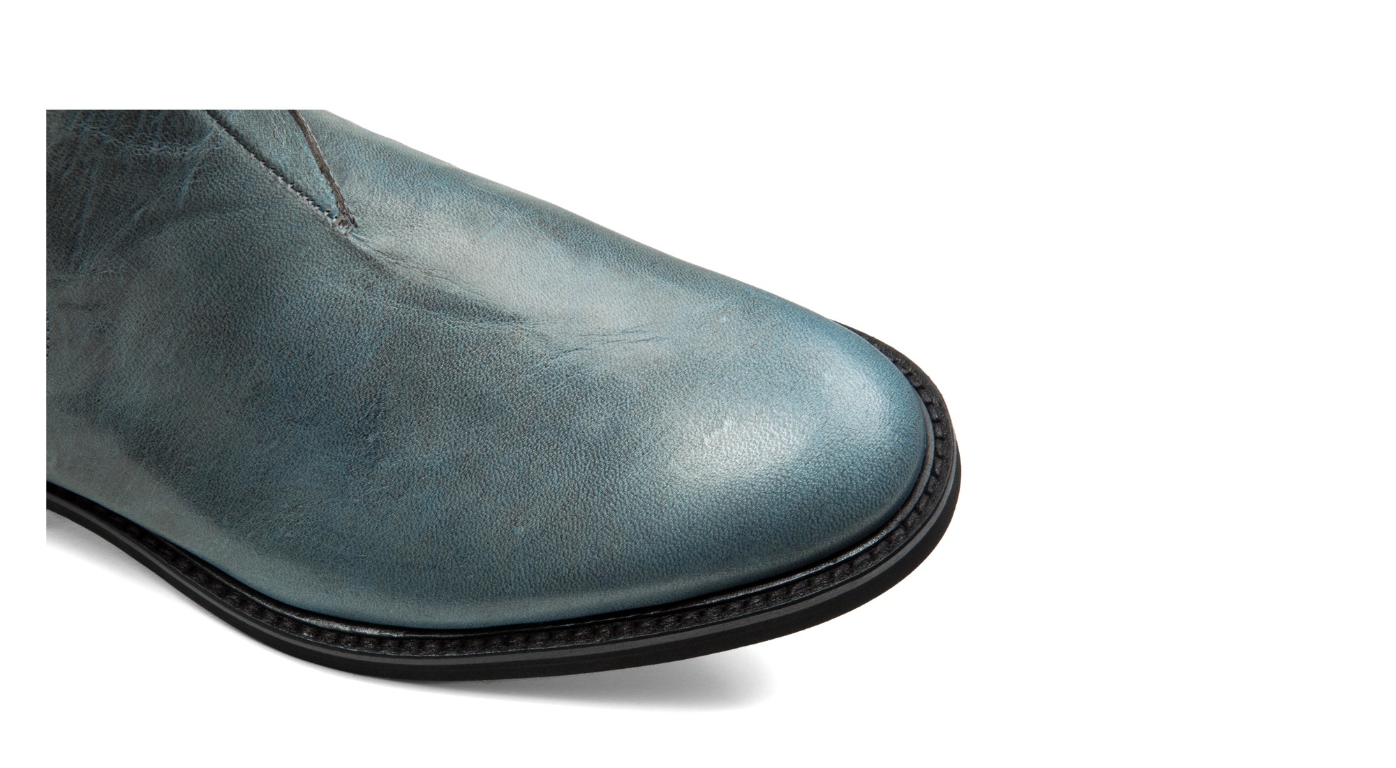 Discover the vintage elegance of our Chelsea boot, featuring a Japanese Cordovan upper with blue and sky blue hues. The super-lightweight Vibram rubber sole ensures durability and comfort, while the silk elastic bands and the soft calf leather lining add a touch of luxury.