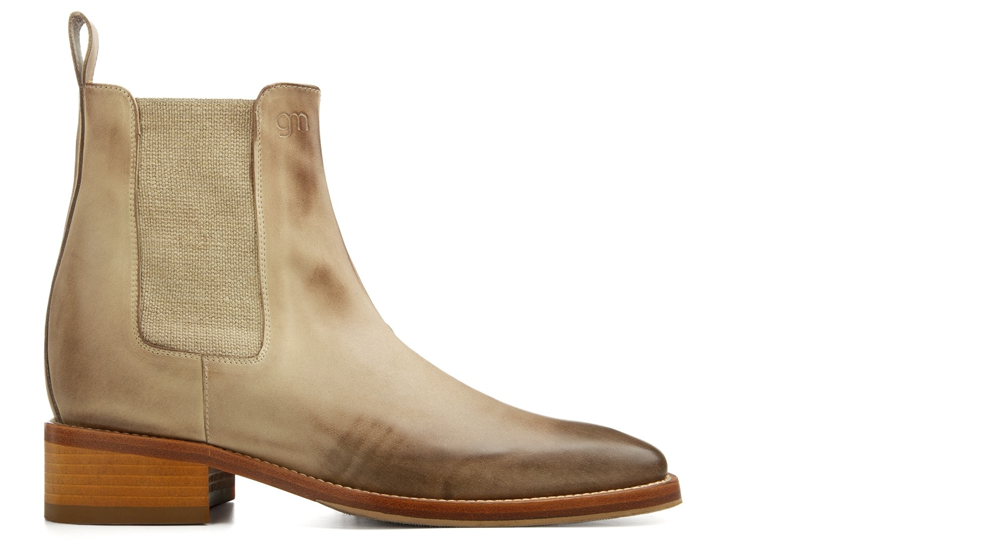 Elevator Chelsea boots with upper in full-grain calfskin, completely hand-dyed with patina effect. The Tuscan leather skilfully worked by the GuidoMaggi craftsmen is soft and enveloping.