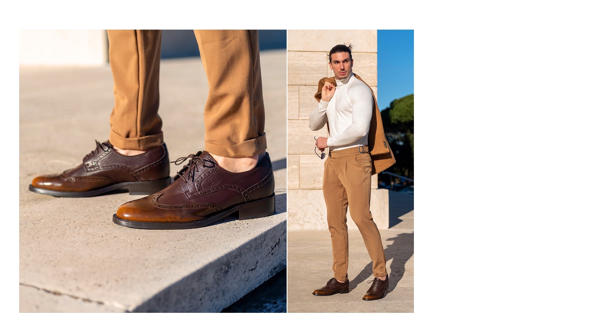 The Vipiteno Brogue Derby combines soft deerskin with a semi-glossy toe featuring a hand-finished "asportato" effect, achieving a perfect balance between craftsmanship and sophistication.