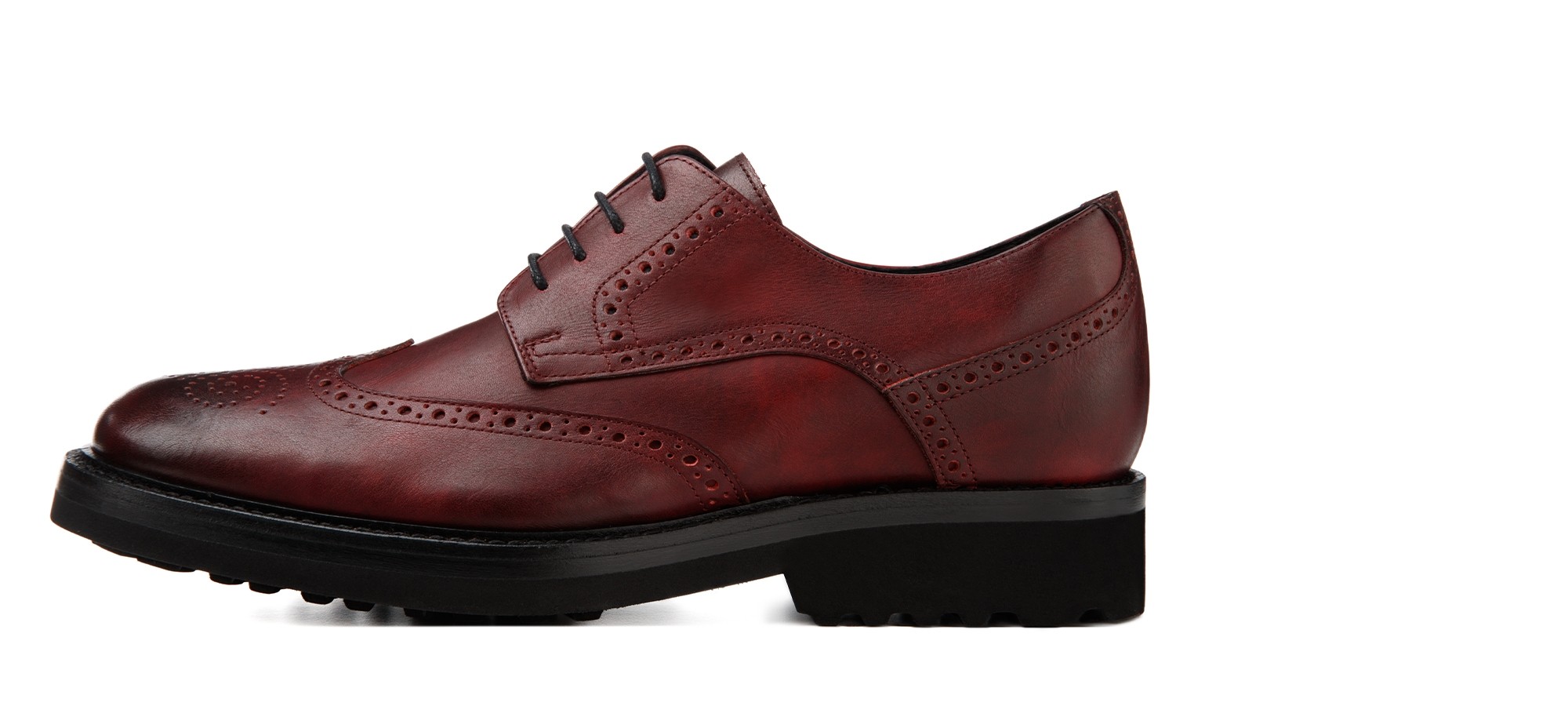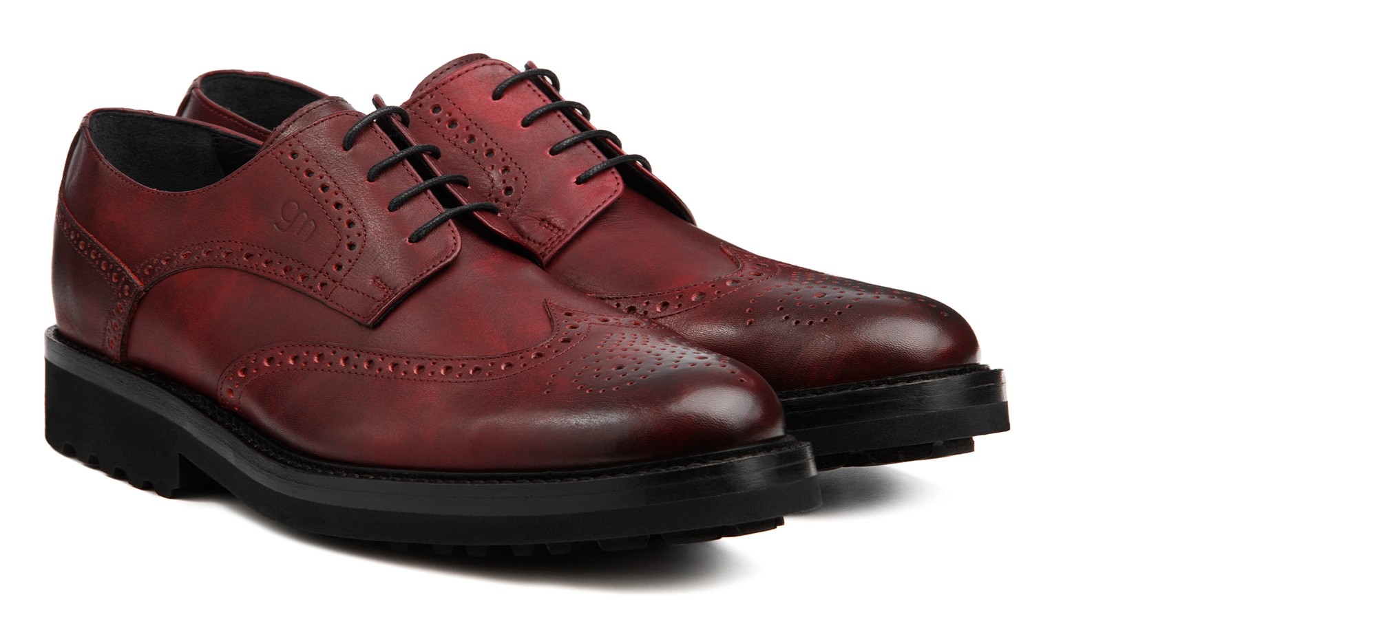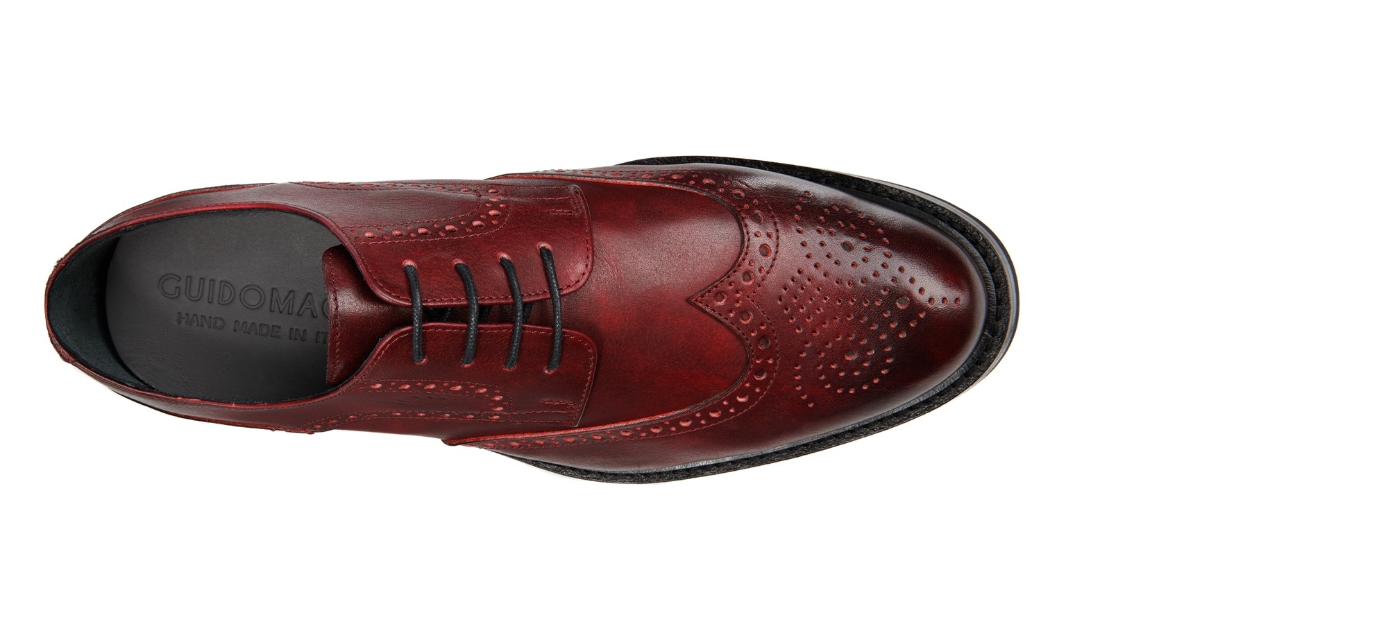 Upper in burnished bordeaux full grain leather. Full soft leather lining. Upper leather, outsole and midsole are sewn at sight. Insole and midsole in genuine leather. Leather heel with special anti-slip rubber. Cotton waxed shoe laces. Tank tread leather outsole. Height increase 2.75inches(7cm) or 3.1inches(8cm). Hand Made in Italy