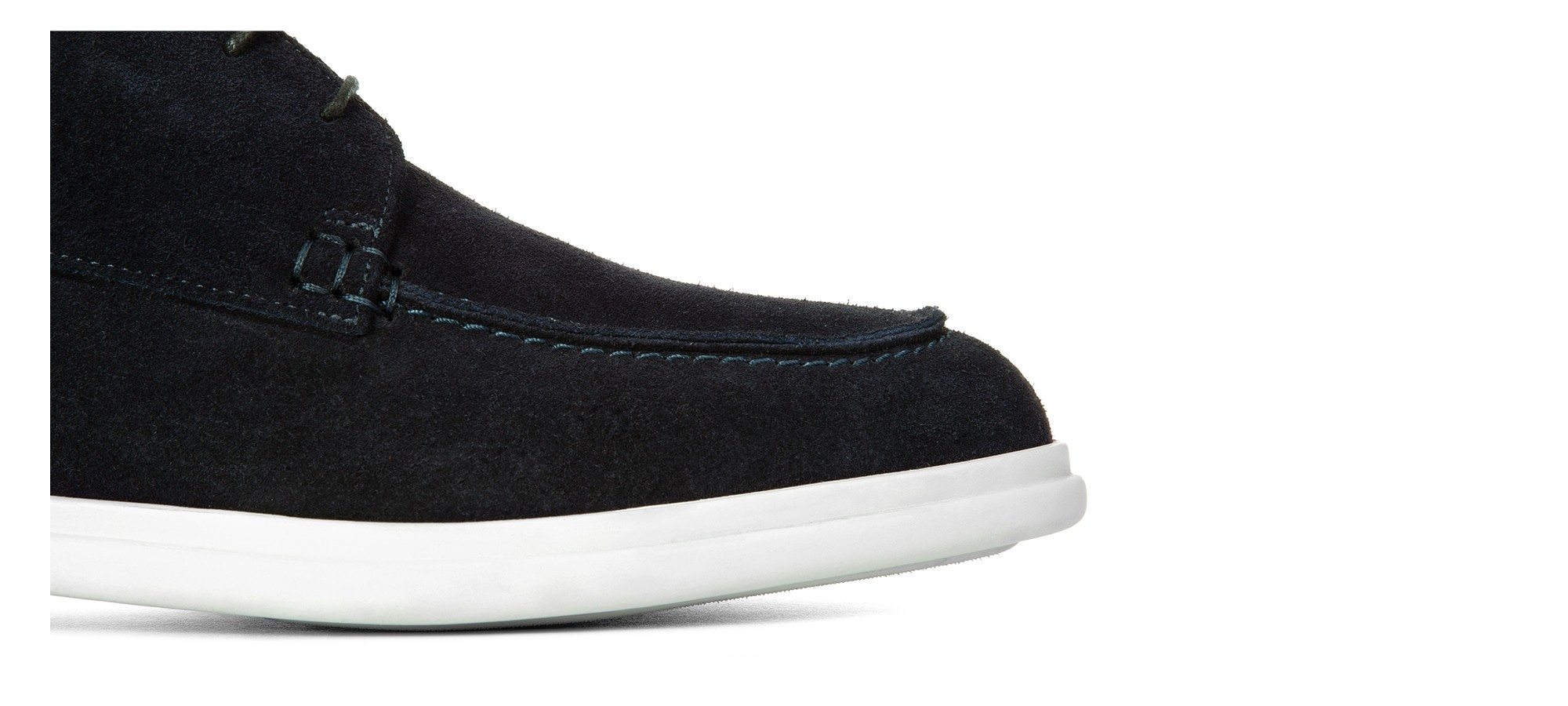 A classic shoe with a contemporary twist inspired by boat loafers. Entirely handcrafted in Italy by GuidoMaggi artisans, it blends timeless elegance with everyday comfort. The suede upper and ultra-light rubber sole provide durability and versatility.