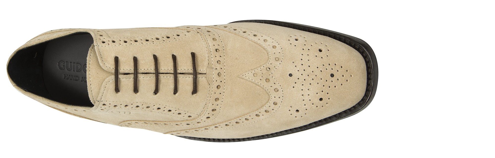 With a clean design and tailor-made, this elevator model features a beige suede upper with dovetail brogue decoration and dark brown leather sole. Extremely elegant and versatile, it's an elevator shoe suitable for any occasion. 100% handmade in Italy.