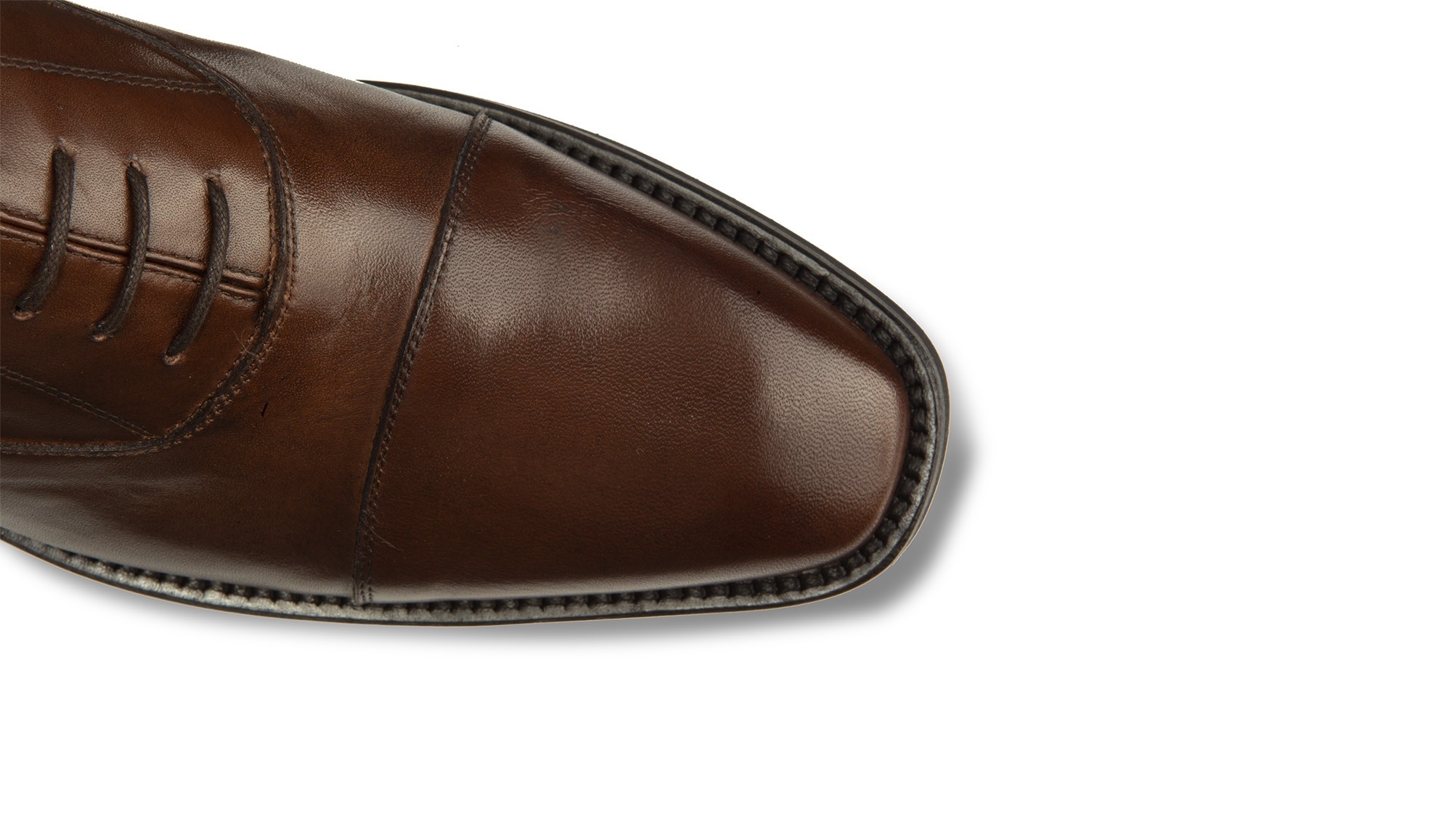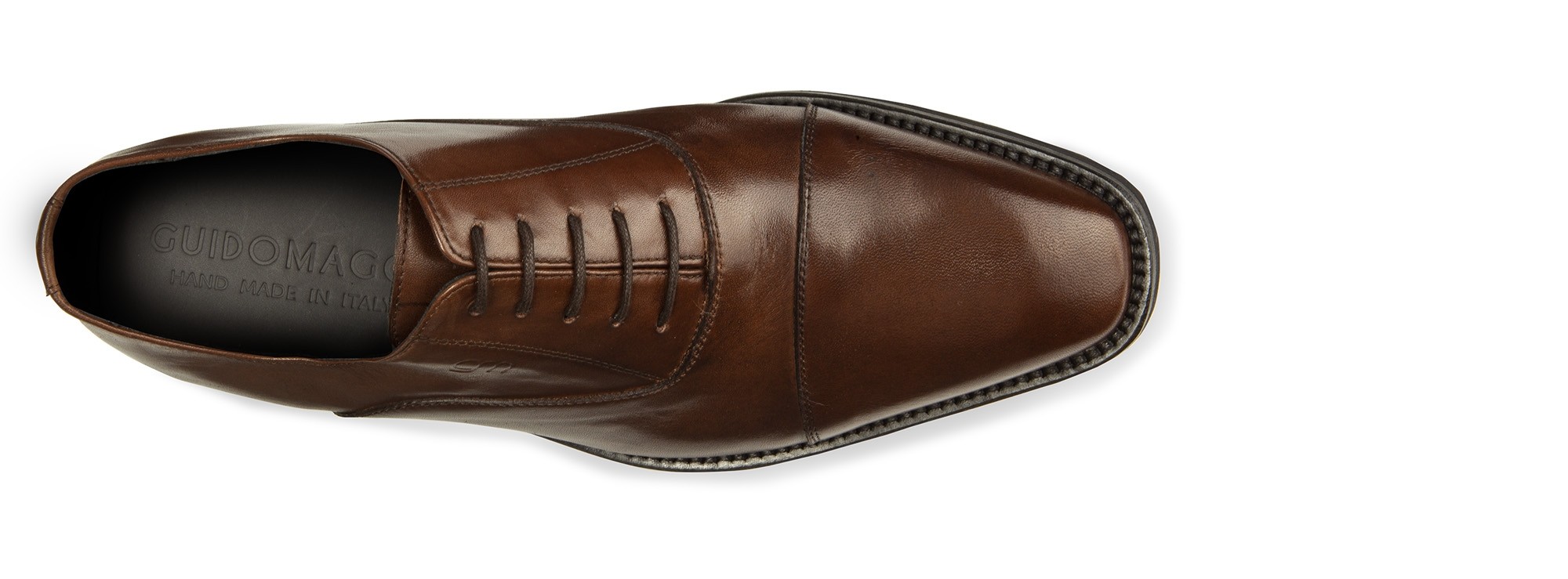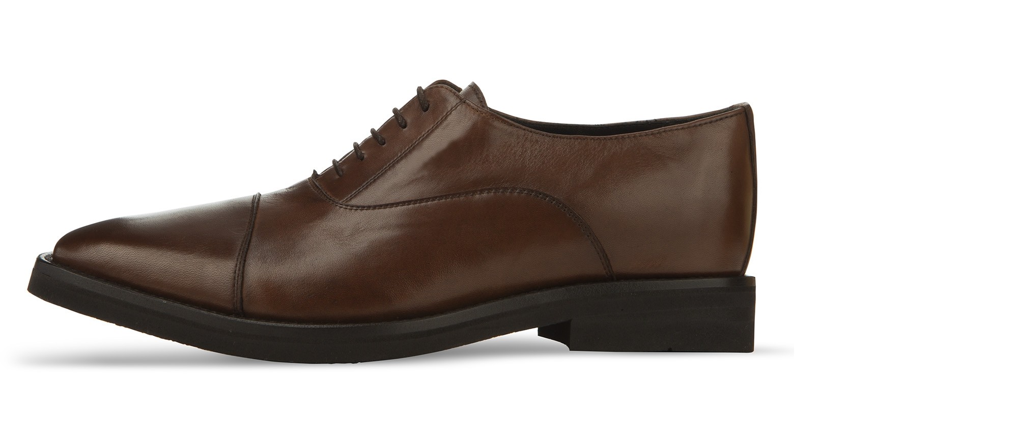 Elevator oxford shoe handmade with brown upper in vegetable-tanned full-grain leather and comfortable Vibram rubber sole.