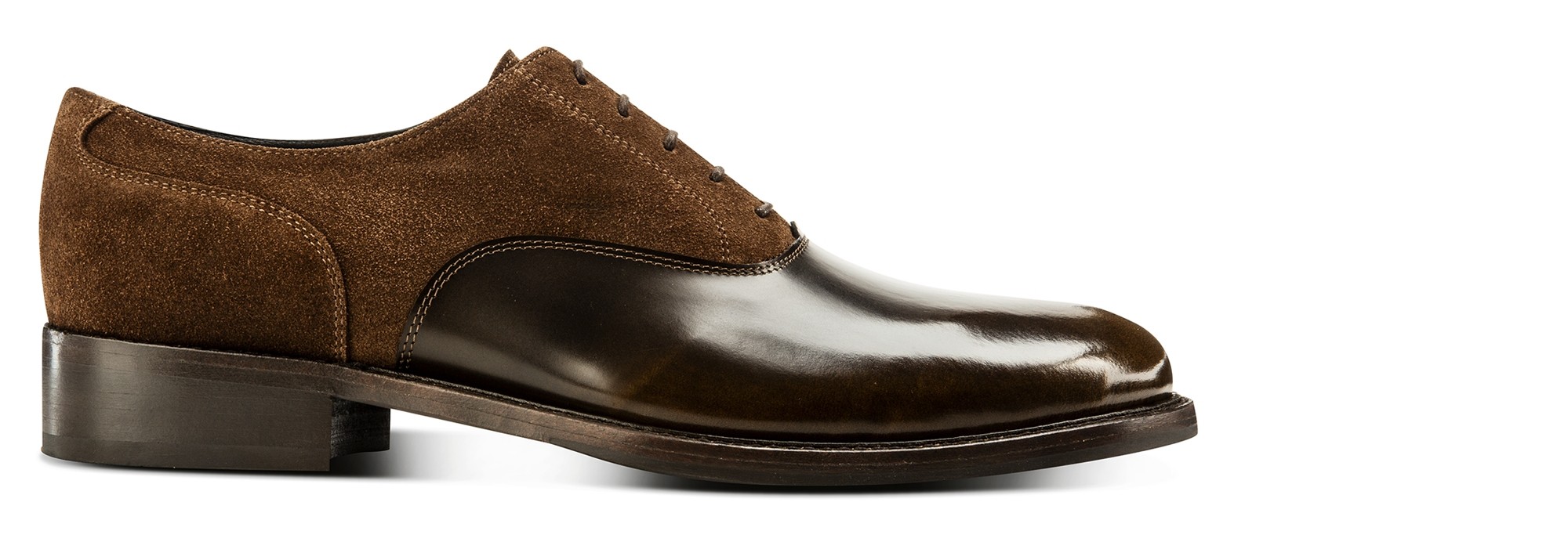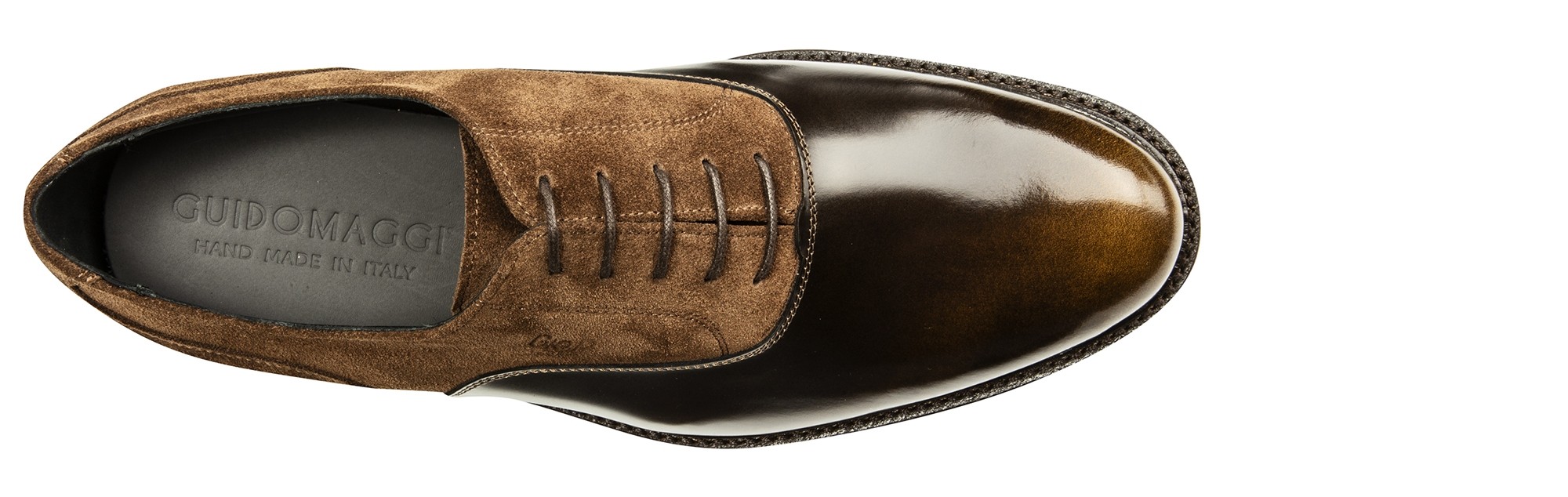The new GuidoMaggi collection is enriched by a great classic revisited in a contemporary style. This elevator model has a suede and brushed calfskin upper. Achieving this unique colour shades result requires a complex manual process, which gives the shoe a unique lightening effect in shades of brown. Very chic, ideal for more formal outfits. Genuine leather sole and an elevator system that adds up to 3.1 inches (8 cm) of extra height. 100% made in Italy.