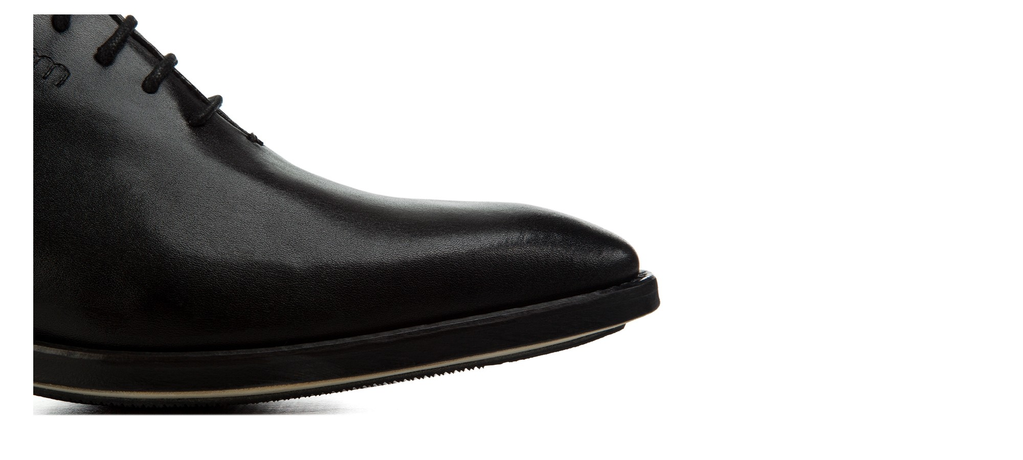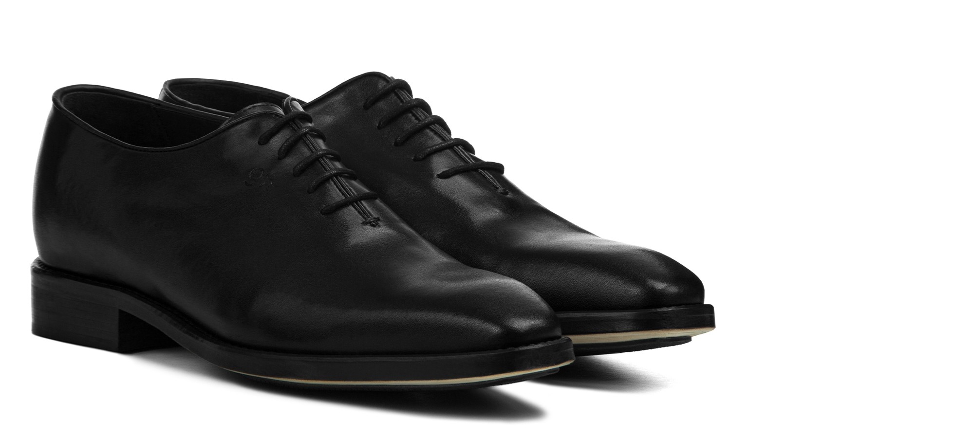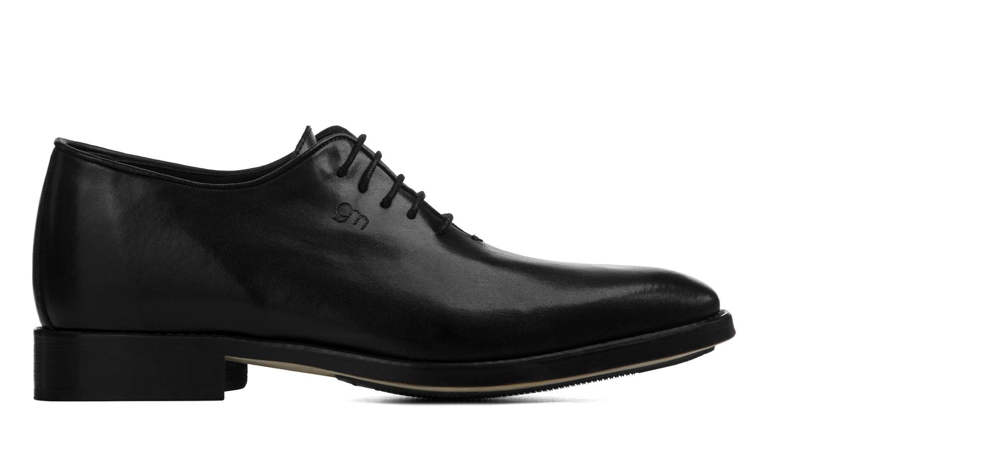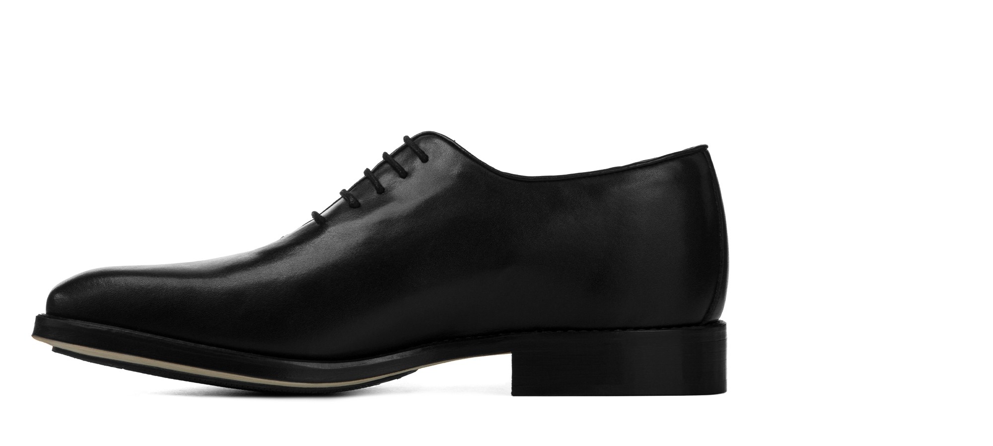Elevator wholecut dress shoes handmade using the fine Goodyear welt construction with upper in vegetable tanned full grain black leather and real leather sole.