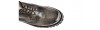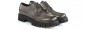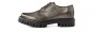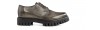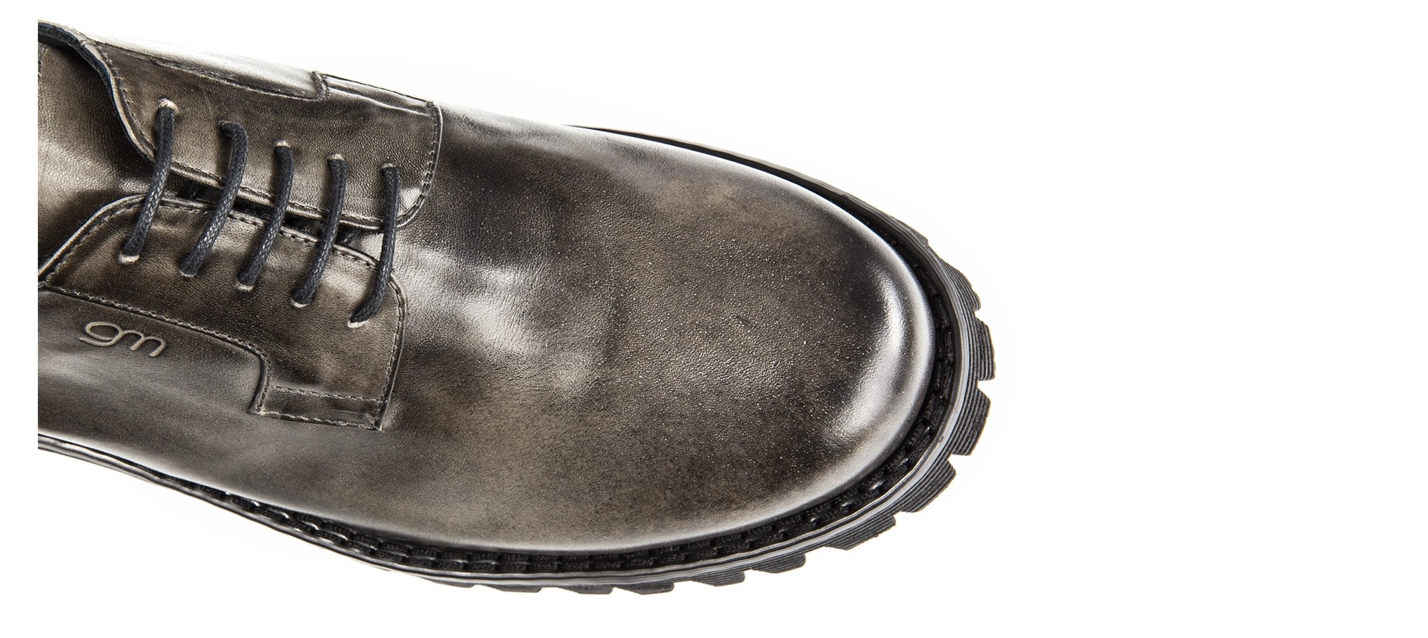 Elevator derby shoe with a casual and contemporary design made of fine burnished gray full-grain leather buffed by hand and lug striped black sole in natural rubber.