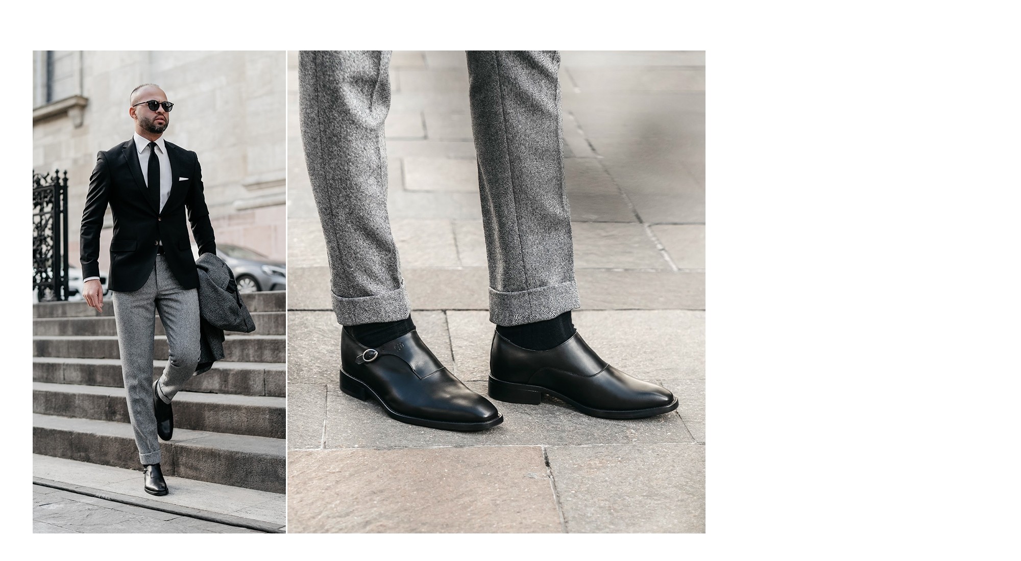 Handcrafted single monk strap elevator shoes with upper in soft full grain black leather and sole in genuine leather stitched at sight, with anti-slip rubber.