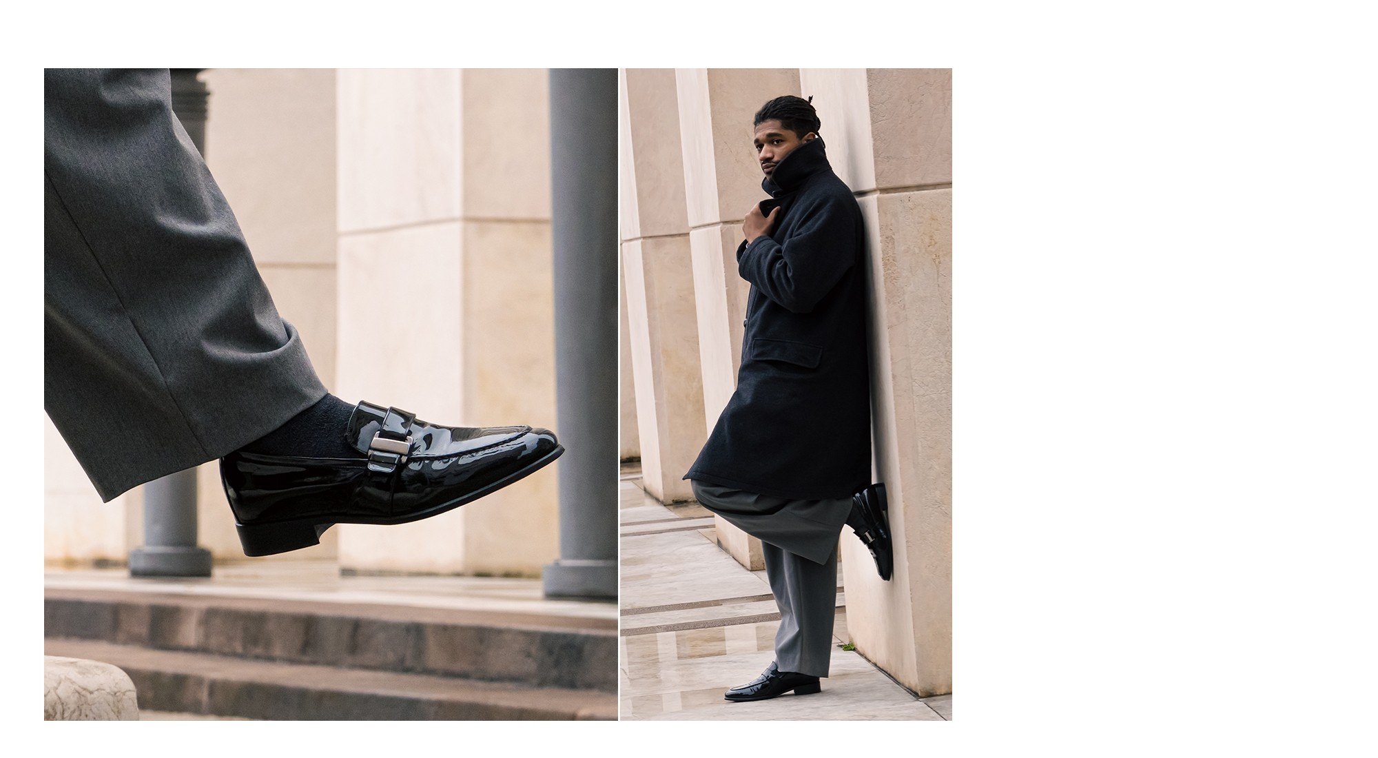 - Upper in calf black patent leather