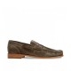 Height increasing loafers made of shiny brushed caramel calf leather and stiched leather sole with anti slip rubber. The design of this classic penny loafer has been revisited giving it a contemporary and slender silhouette.