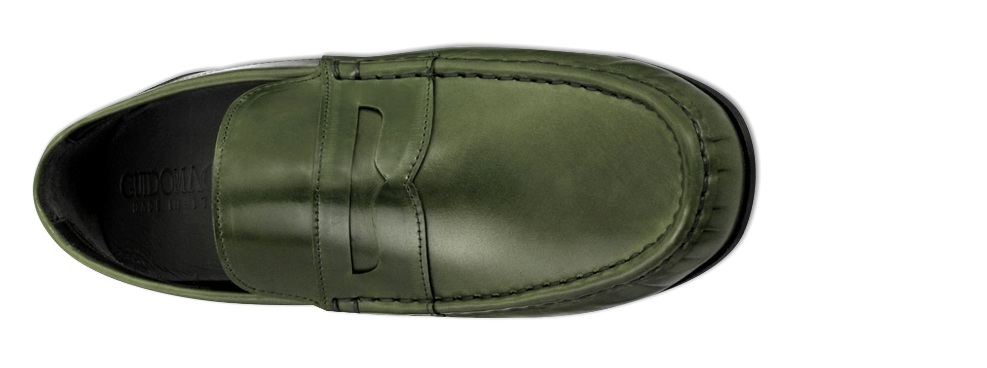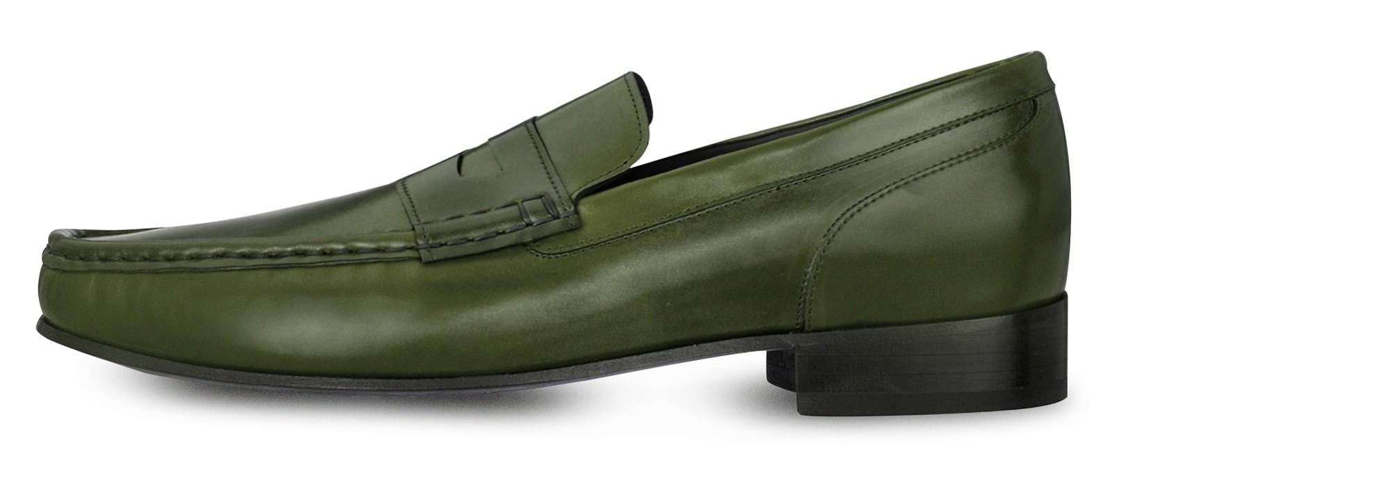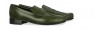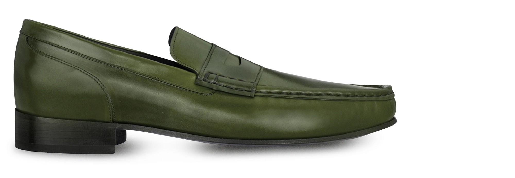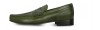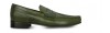 Elevator loafer with clamp featuring upper made of genuine Shell Cordovan leather of an intense green color and Goodyear welted leather sole.