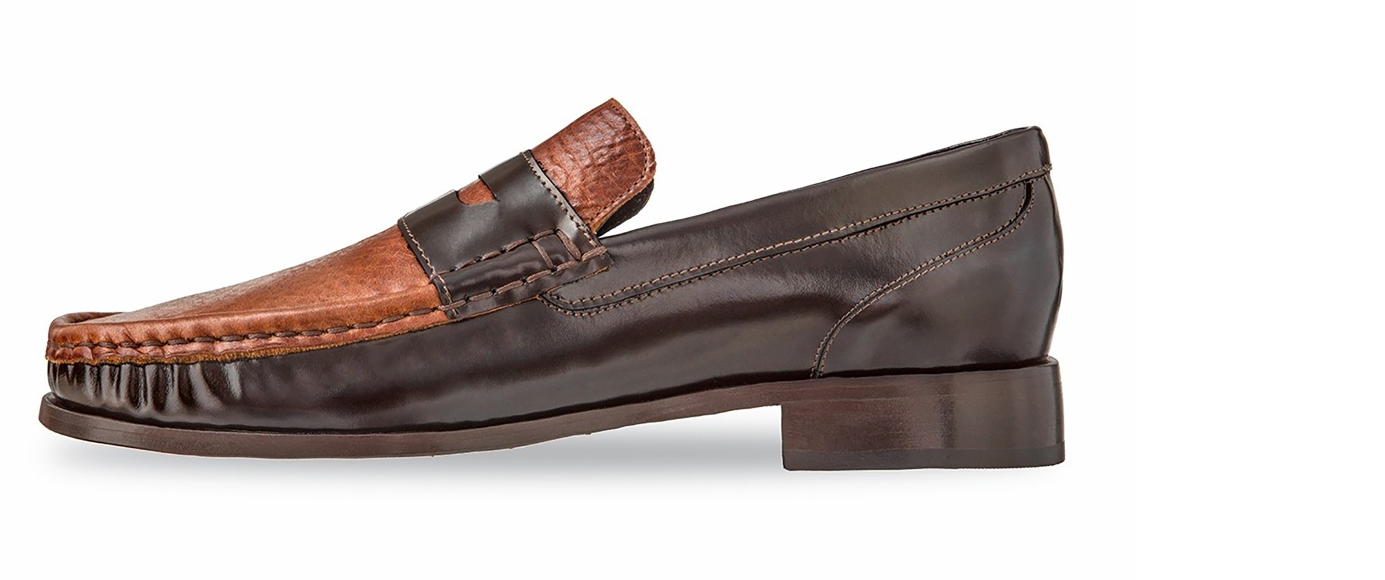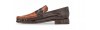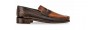 Refined elevator loafers made of soft Tuscan nappa leather and brushed calfskin featuring elegant shades of brown. The dark brown leather sole is Goodyear stitched.