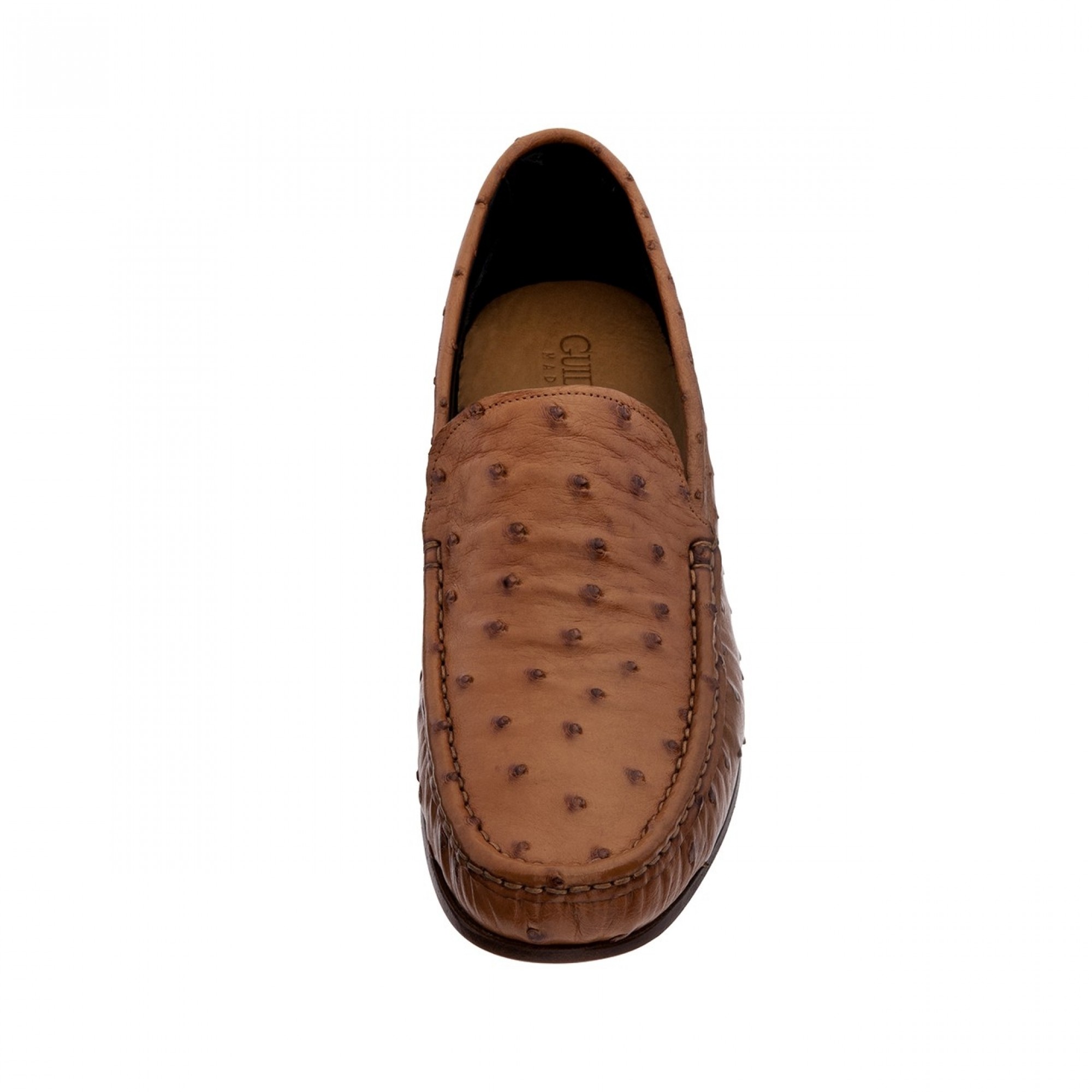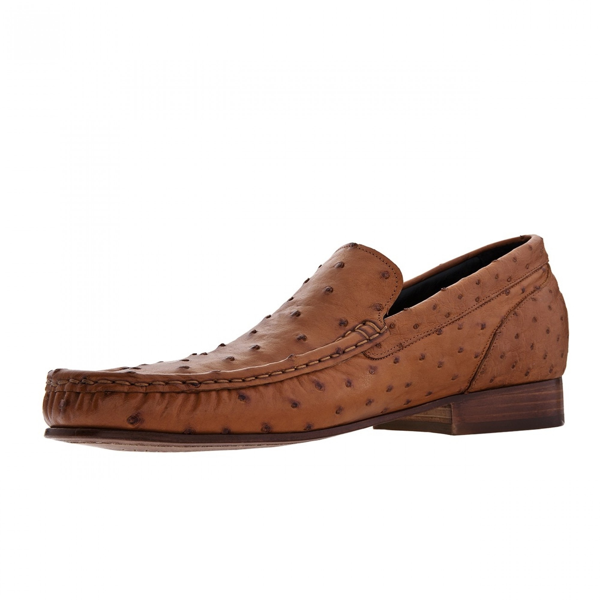 *Gudomaggi's ostrich skin loafers with invisible height increaser are extremely luxurious, prestigious and made to last. Ostrich skin distinguish itself from other leathers skins for its impermeability, durability, together with its predisposition to the colouring. The nuances reach over 100 different shades.Originally from South Africa, ostrich skin has excellent beauty, resistance and softeness features which make it as fine as crocodile or python leather skin. It perfectly fits the shape of the shoe, giving it a very refined and elegant appearance, typical of those who give importance to their look.