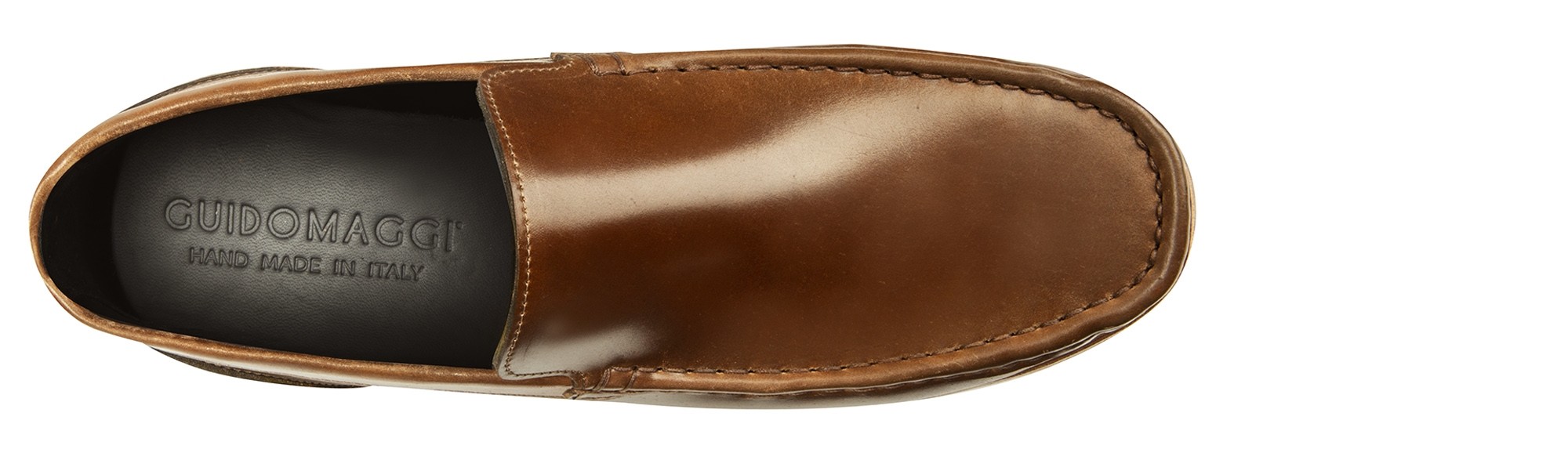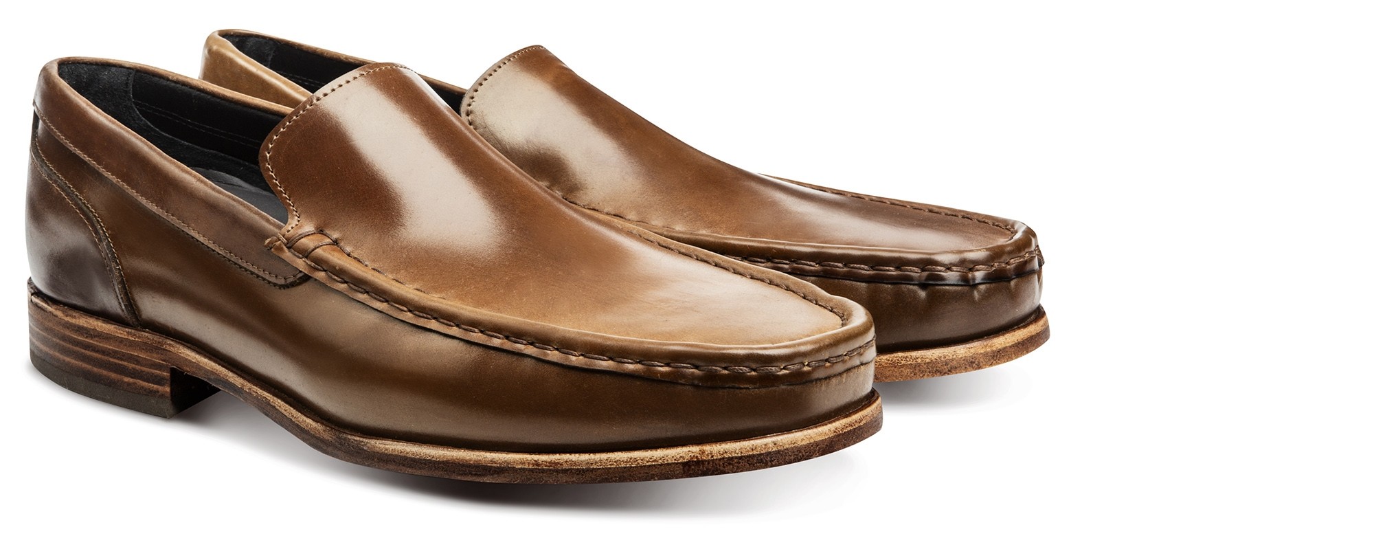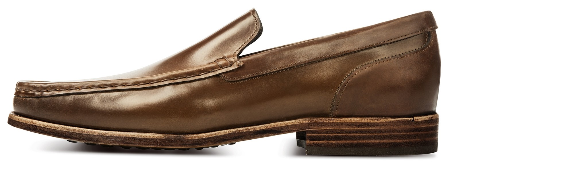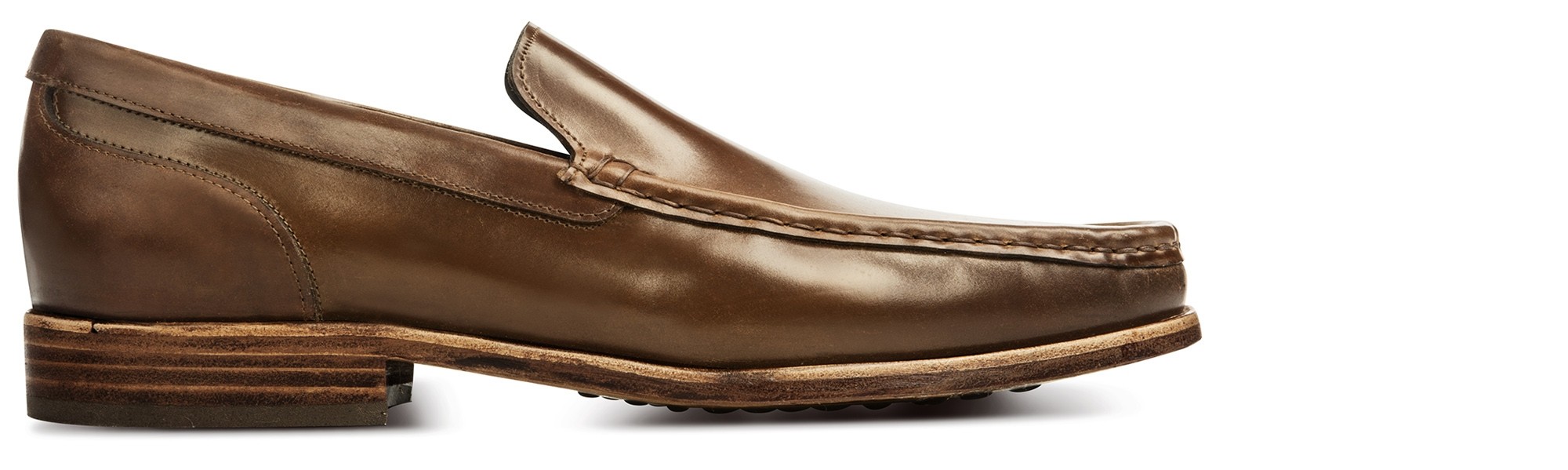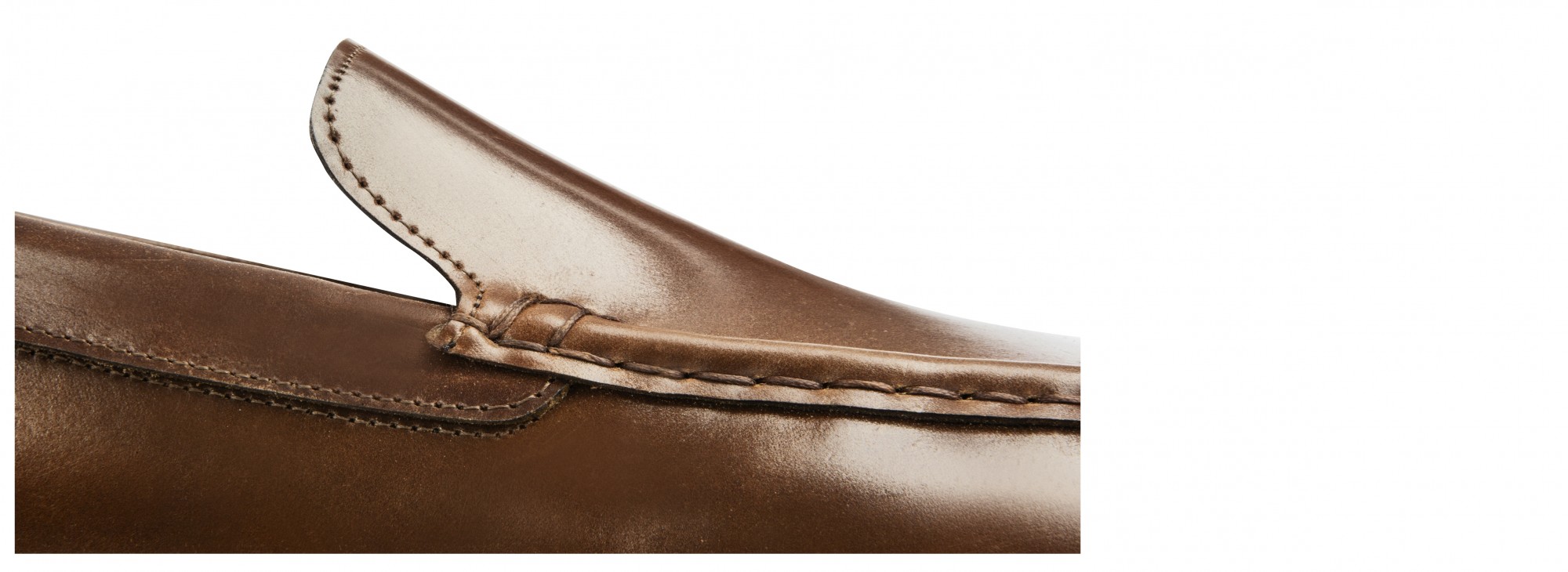 Goodyear welted elevator loafers handcrafted in precious Shell Cordovan leather featuring an brown nuance and sole in genuine leather.
