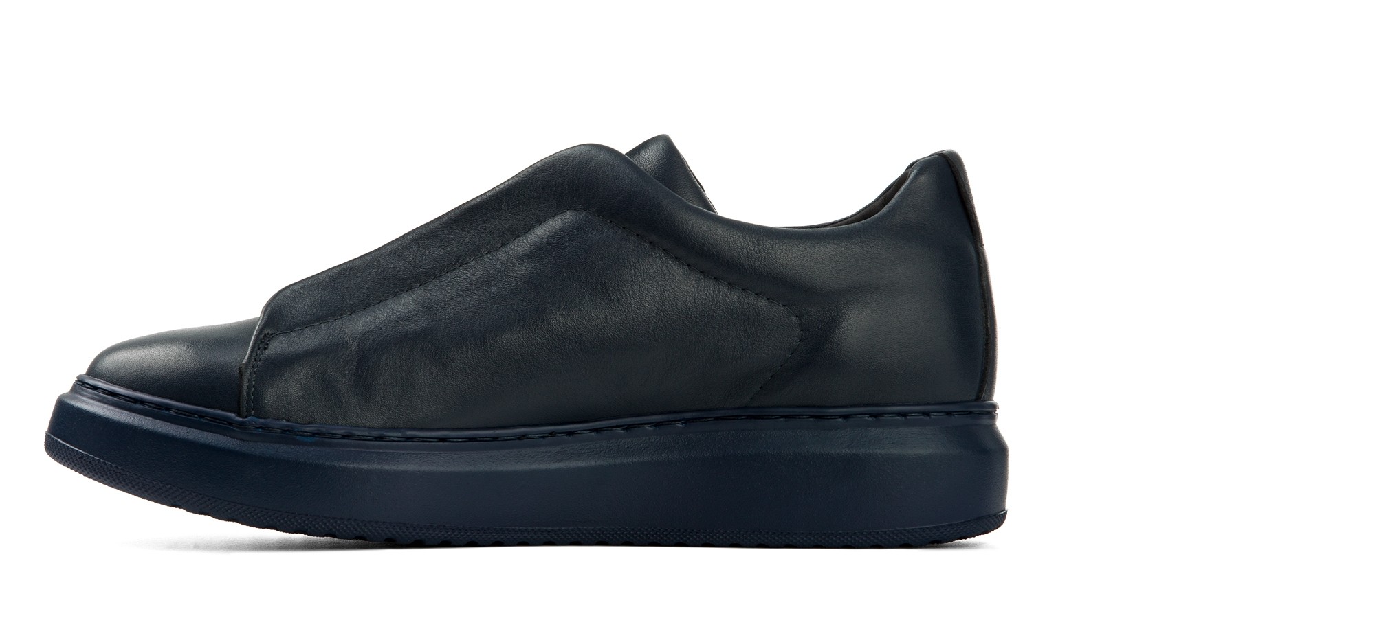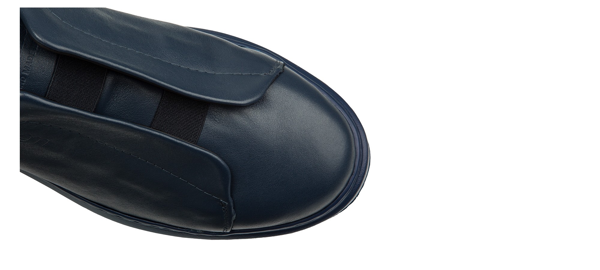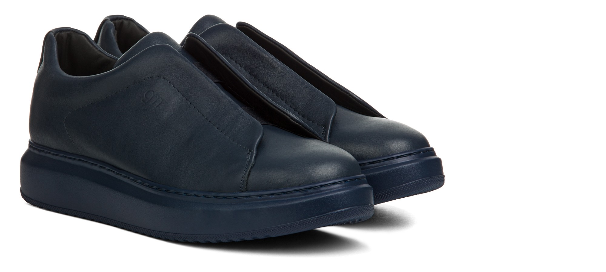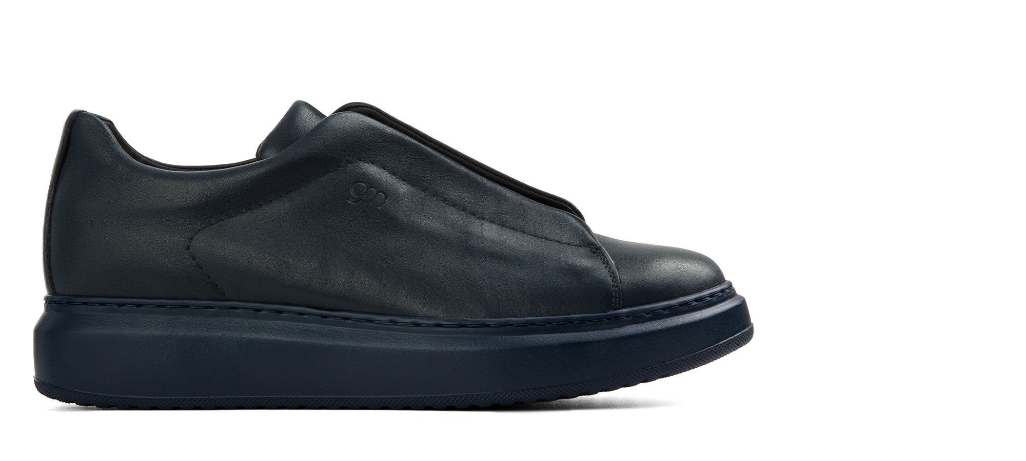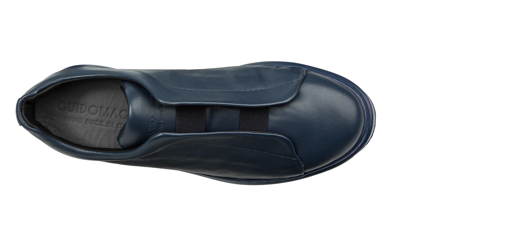 Elegant and dynamic elevator sneakers, a true must-have of the season. The upper is in soft blue full grain leather, durable and long-lasting. Handmade by the skilled GuidoMaggi craftsmen, it features comfortable central elastic bands for greater wearability.