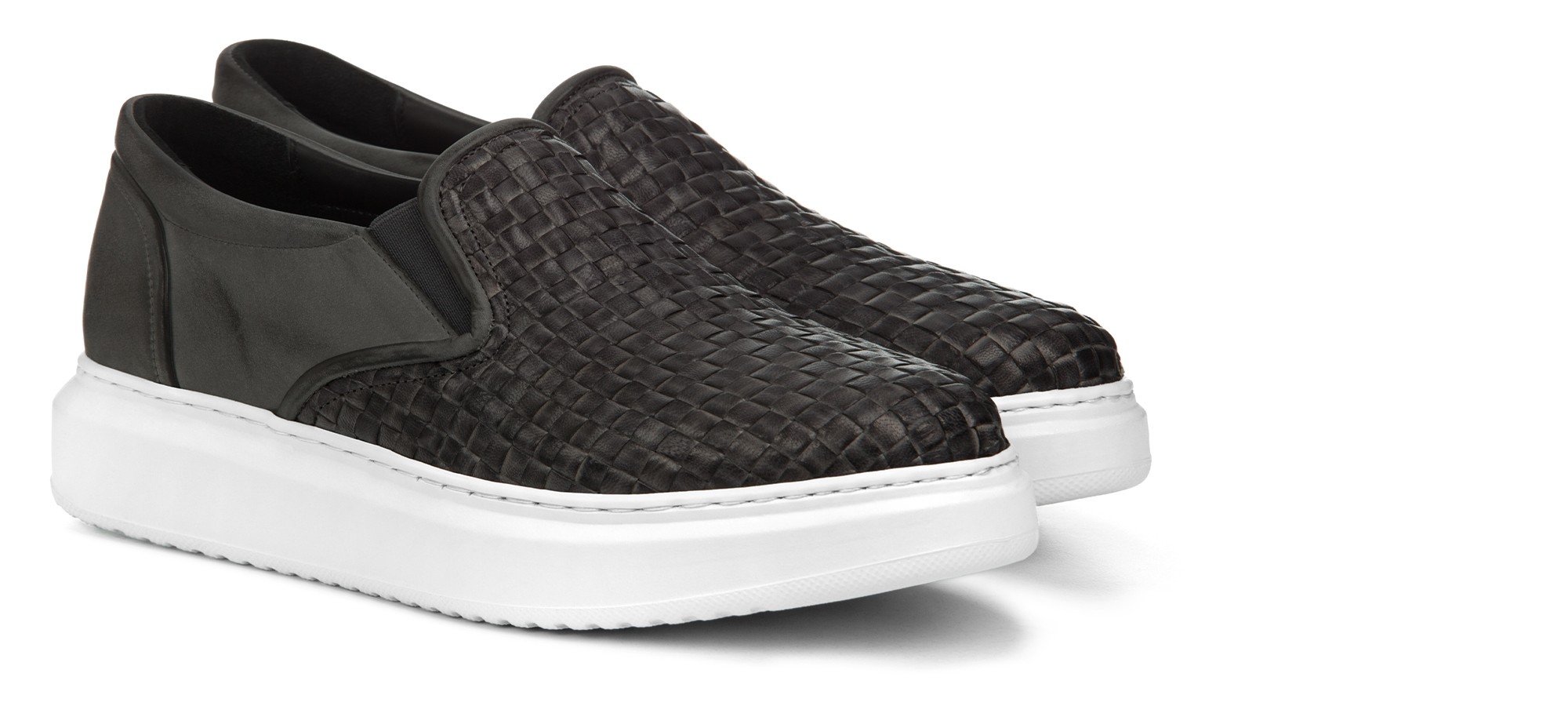Discover the effortless elegance of our slip-on sneakers, a fusion of style and comfort. Crafted from fine hand-dyed crust calf leather, they feature a silk elastic and a woven calf leather motif, adding a touch of sophistication to the design. The soft calf leather lining ensures all-day comfort.