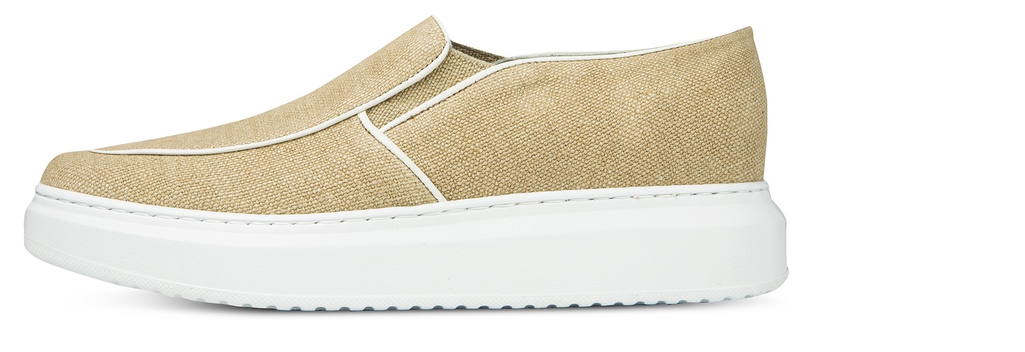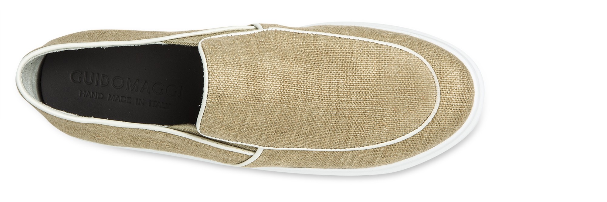 GuidoMaggi craftsmen to create this comfortable slip-on in light beige pure raffia with finishes and details in white full-grain leather. The new white sole is made of ultralight natural rubber. Thanks to its dynamic design, it perfectly matches any casual outfits. Namu is able to increase the total height by 2.4 inches (6 centimeters). Designed and handmade in Italy.