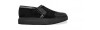 Elevator slip-ons made of black greased suede that enhances its vintage character and details in tone-on-tone shiny calfskin. The black sole is in natural rubber.