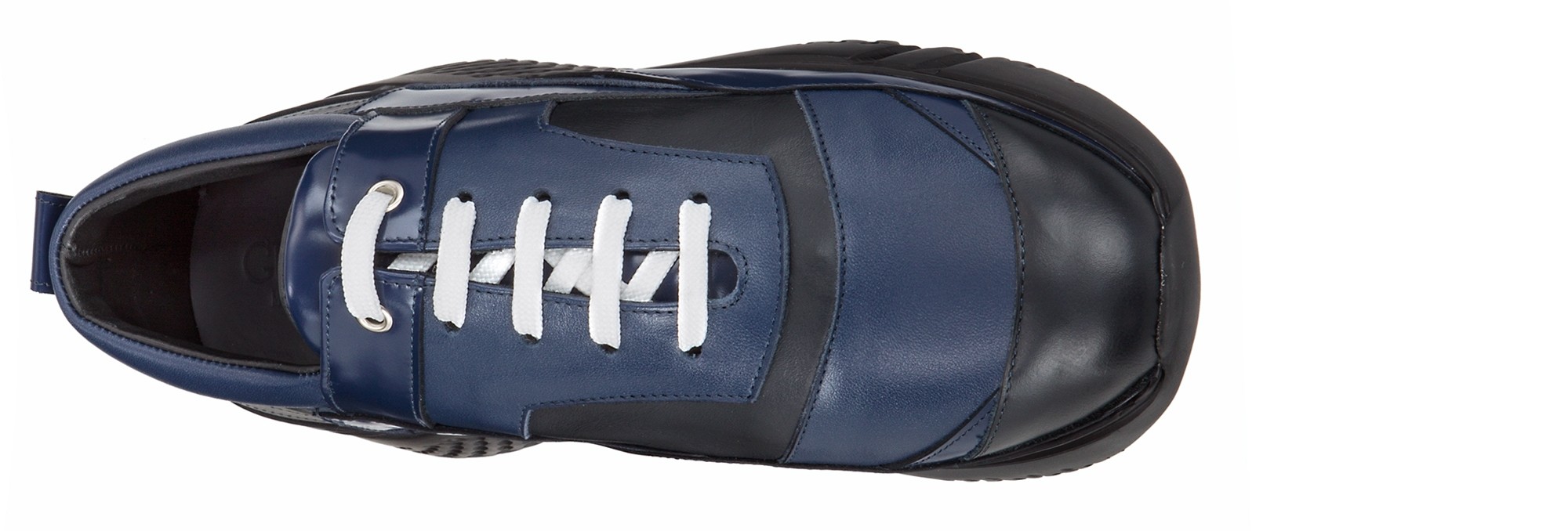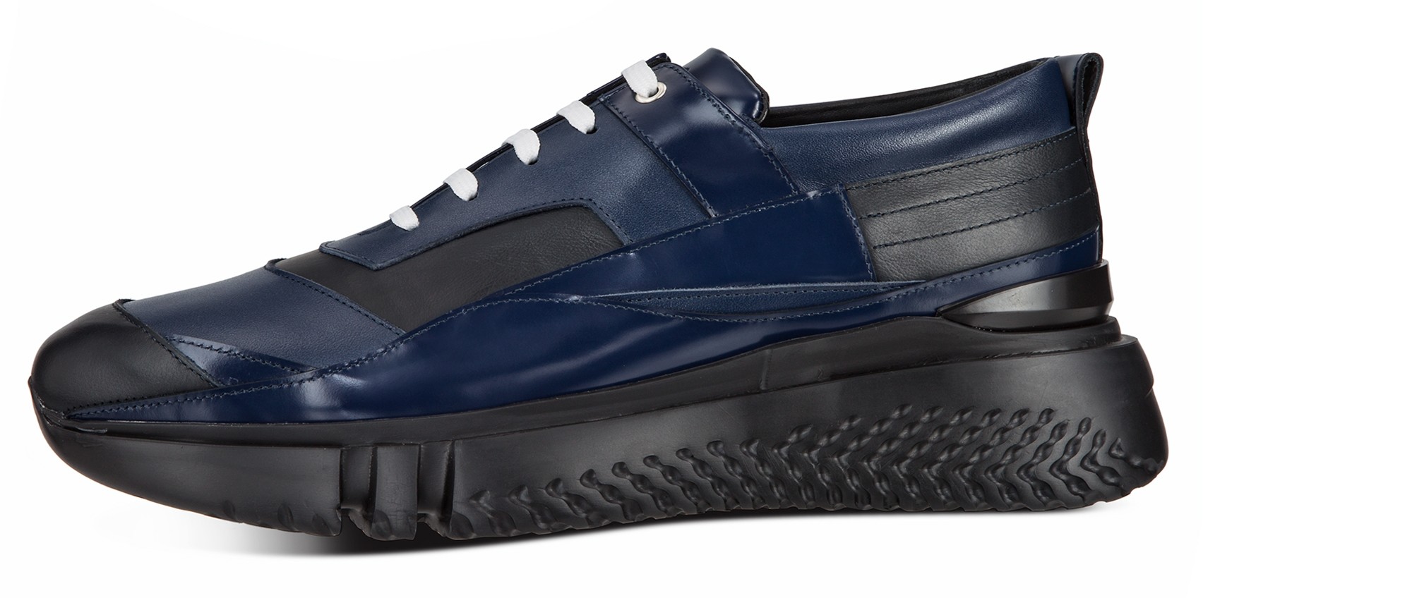 Elevator sneakers featuring a contemporary design characterized by a layered structured upper made using 4 skin leathers: rubberized leather, suede, brushed and tumbled calfskin. The street style-inspired sole is made of super-light natural rubber.