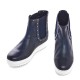 Handcrafted high-top elevator sneakers with two-tone upper in dark blue and gray suede and black super-light sole in natural rubber.