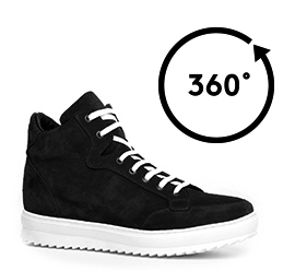 High-top elevator sneakers with velvety upper in black suede and super lightweight white sole. A chromatic contrast which enhances its lines and elegance.