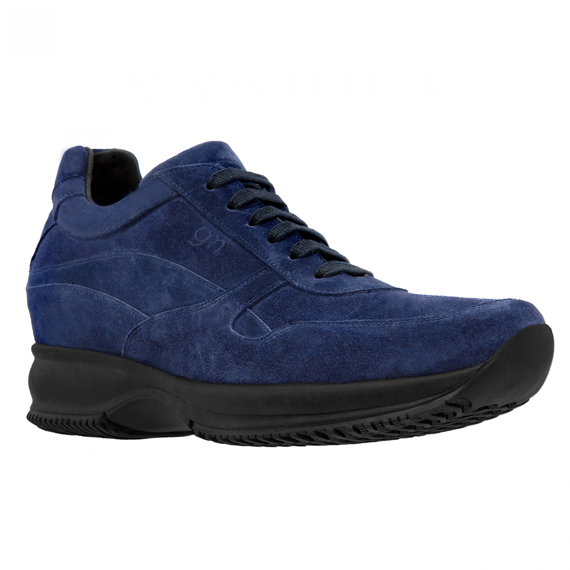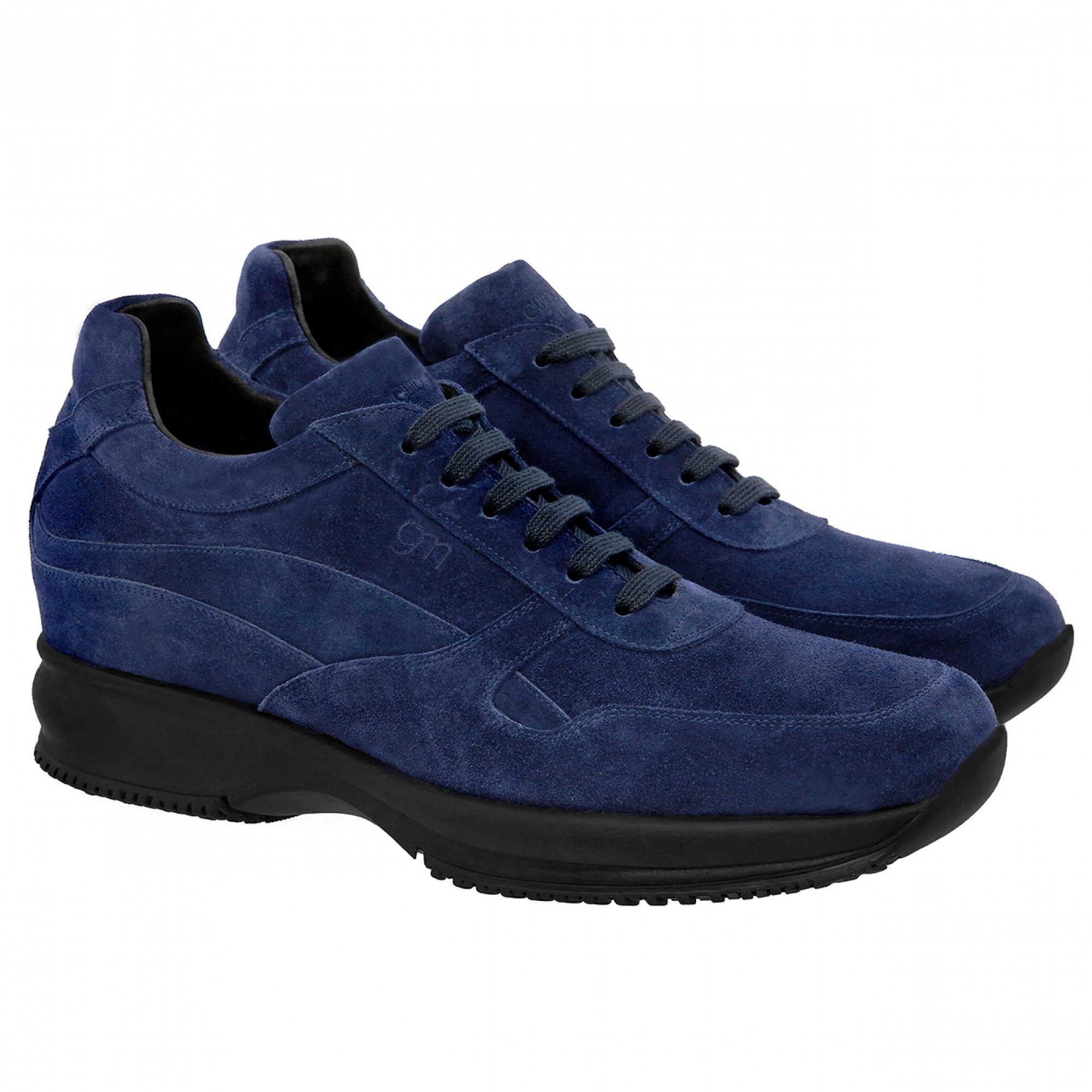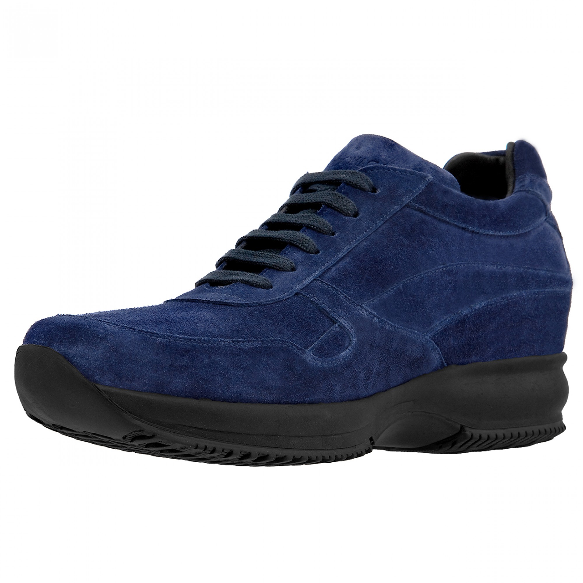 Upper in blue navy suede calf leather. Lining in soft goatskin. Insole in genuine leather. 2 pairs of cotton shoe laces. Lightweight high quality rubber outsole anti-slip. Height increase: 2.4in(6cm), 2.75in(7cm), 3.1in(8cm) or 4 in(10cm). Hand Made in Italy