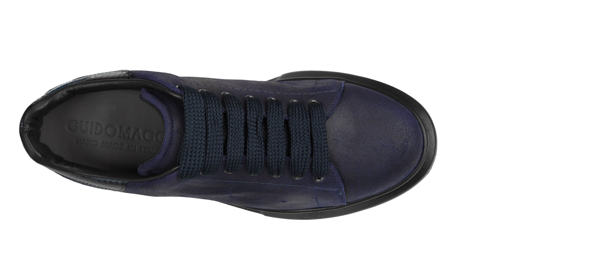 The sole is in super light rubber with a porous effect, the laces in the same color. Raise your height up to 3.1 inches (8 centimetres) in total comfort and secrecy. Handmade in Italy.