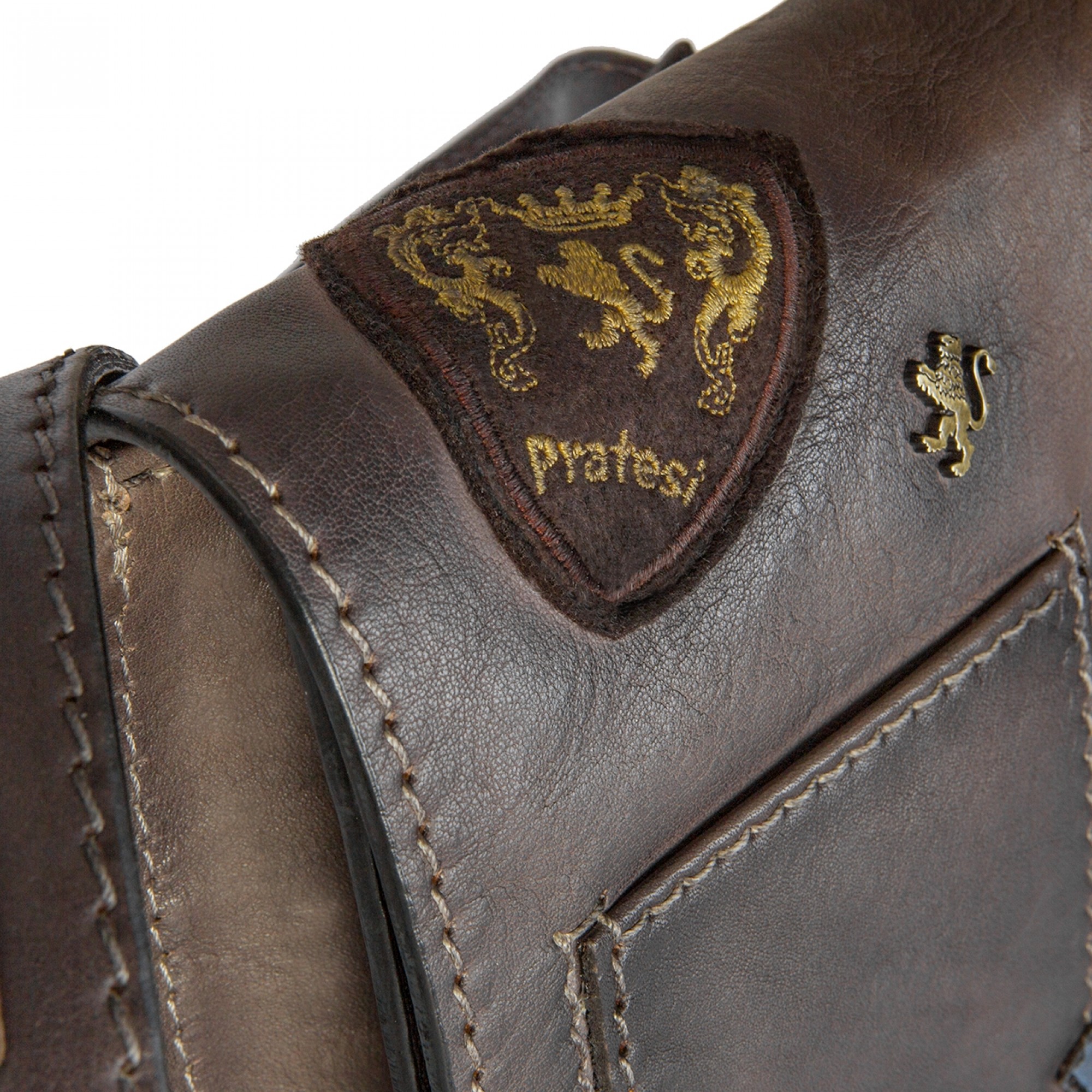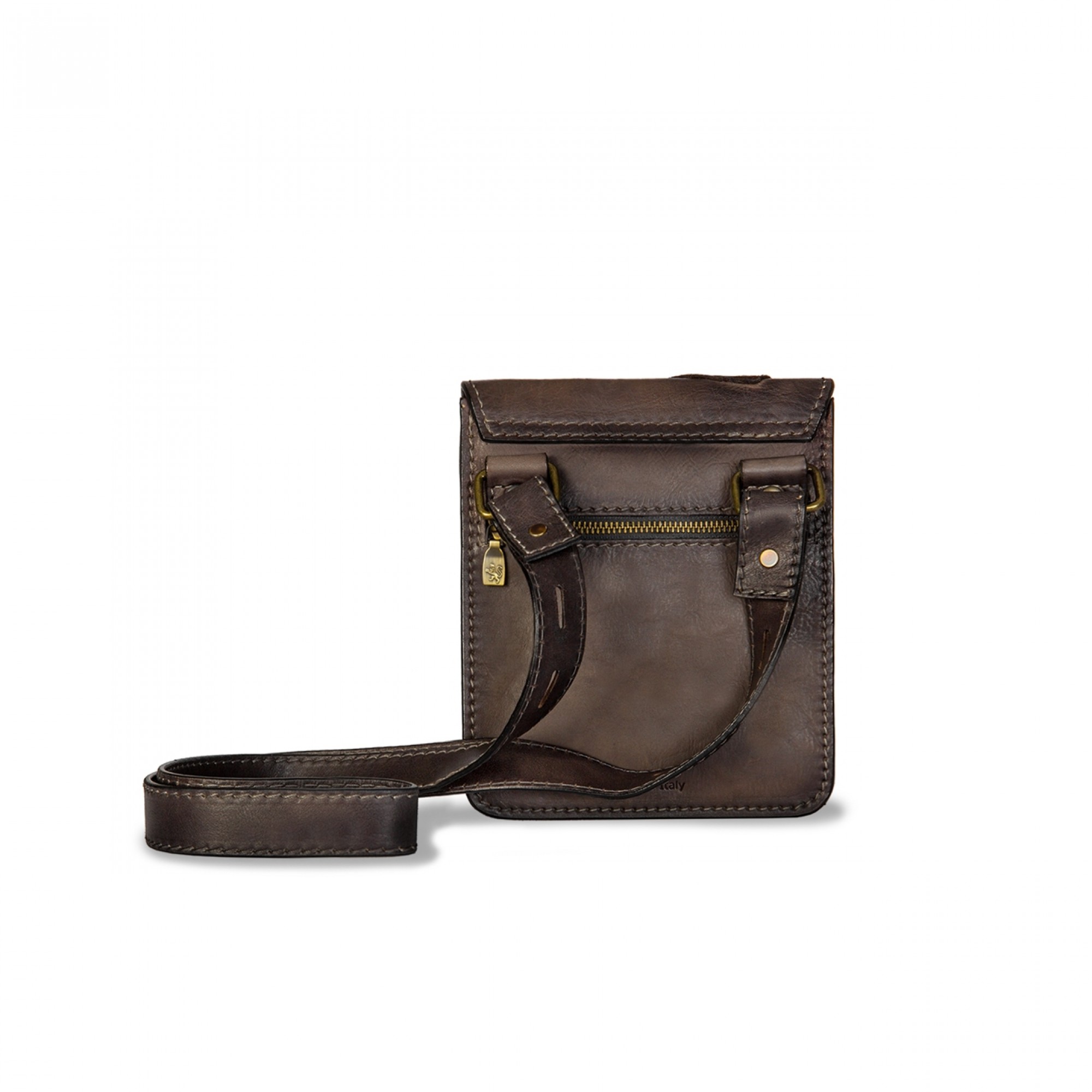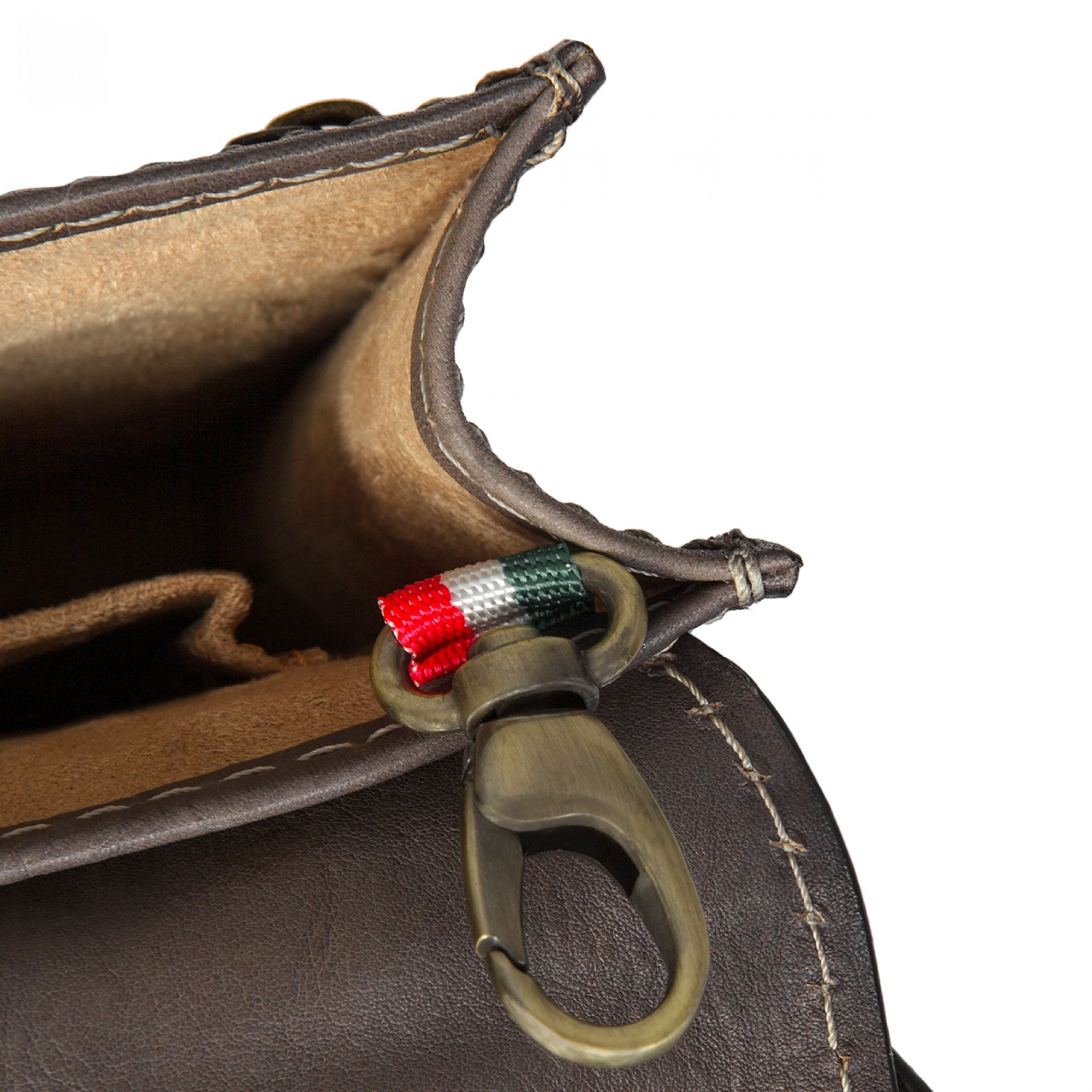 Adjustable leather strap and button closure. Natural hemp and cotton cloth bag is included. Made in Italy. Dimensions: 22 x 18 x 6 cm