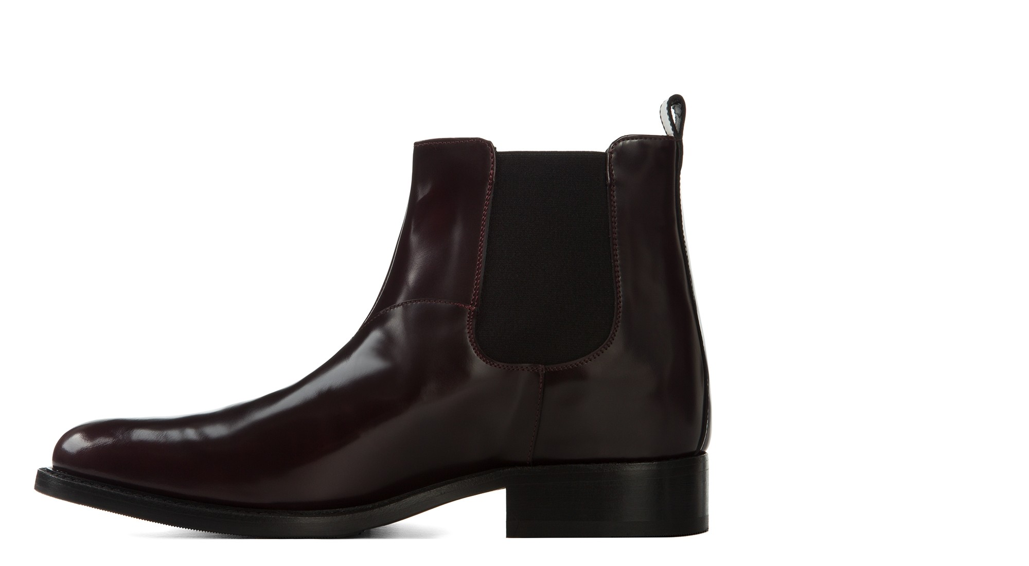 Elegant handcrafted elevator Chelsea boot in premium Italian brushed leather in a deep dark burgundy shade. The classic design is enhanced by refined silk side elastic panels and a 100% Italian leather sole. A versatile and classy footwear, perfect for any formal or casual-chic occasion.