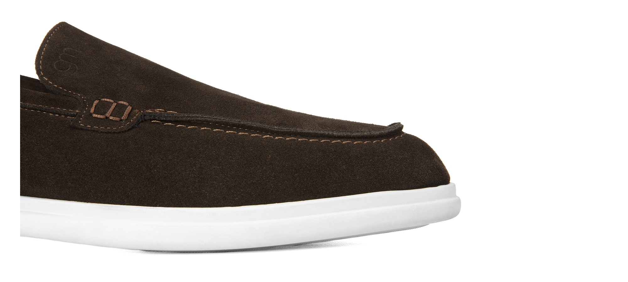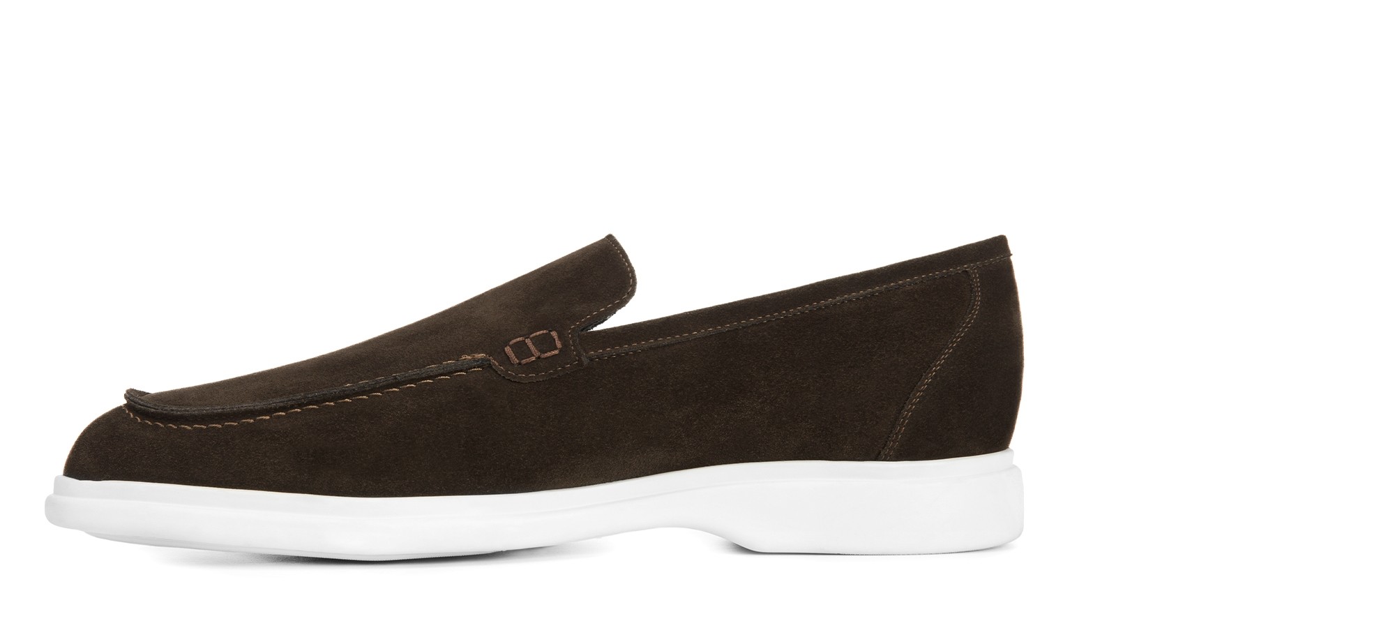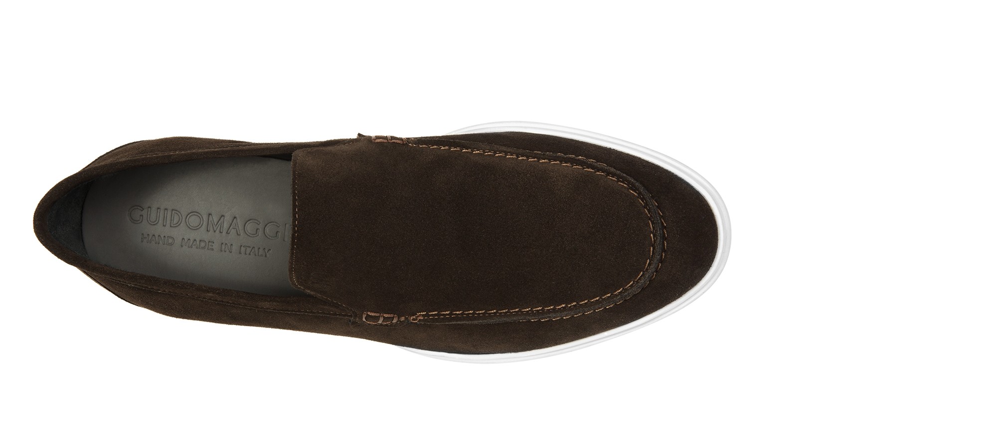 Elevator loafers with upper in suede velour featuring an exclusive brown colour. The sole is in natural rubber, characterized by a contrasting gray nuance.