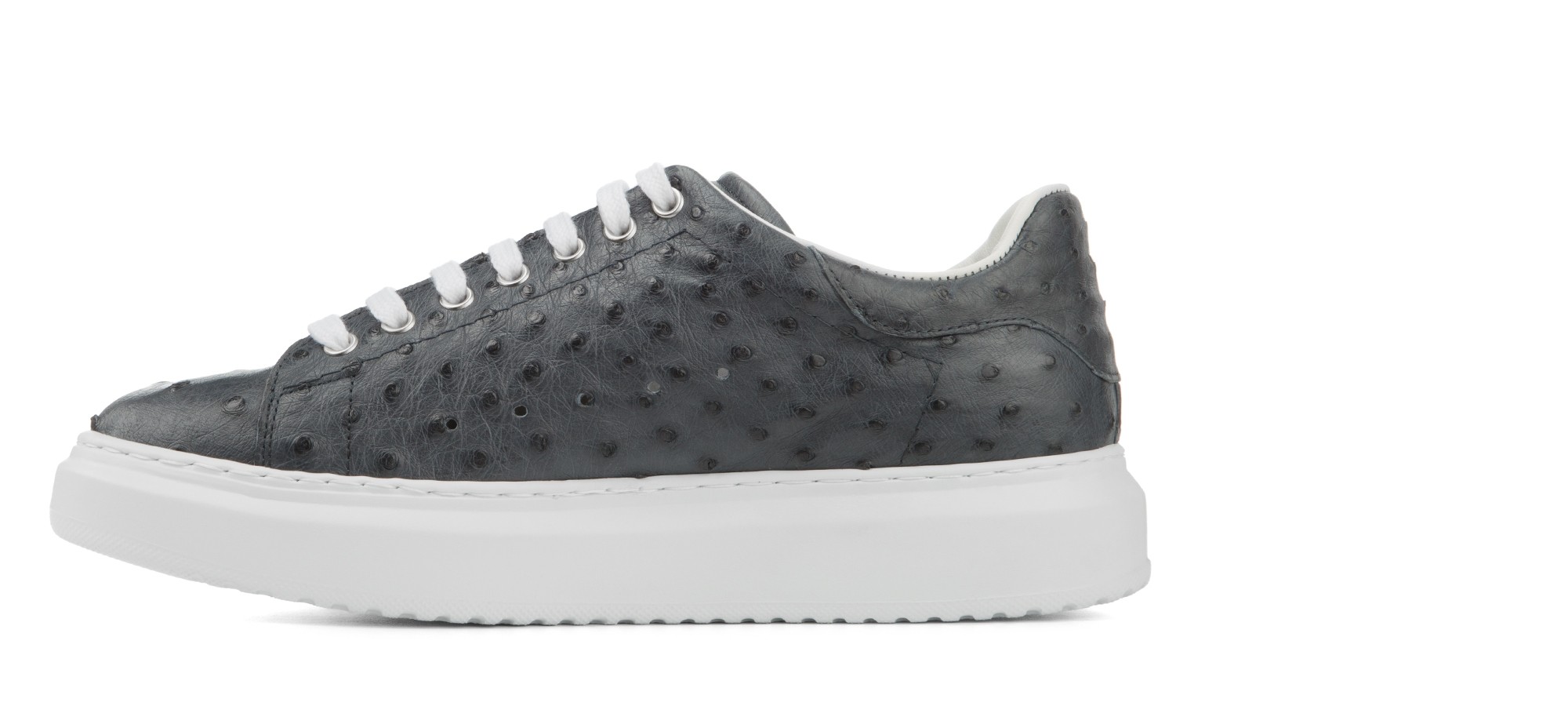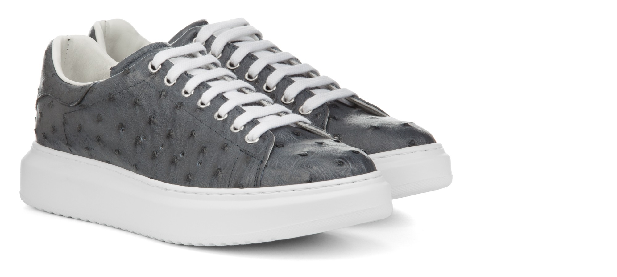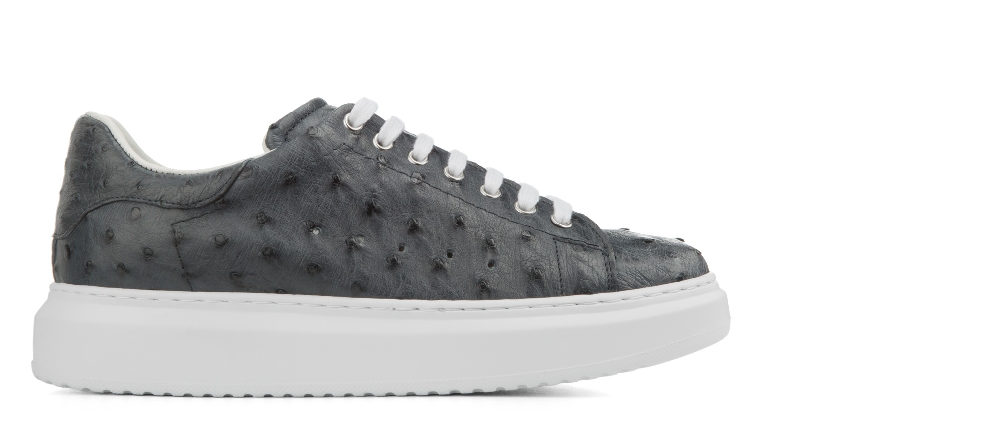 In the name of authentic luxury: here are the sporty and sophisticated sneakers by GuidoMaggi. Dynamic design and precious workmanship for this shoe, handmade and tailor-made, with genuine ostrich upper.