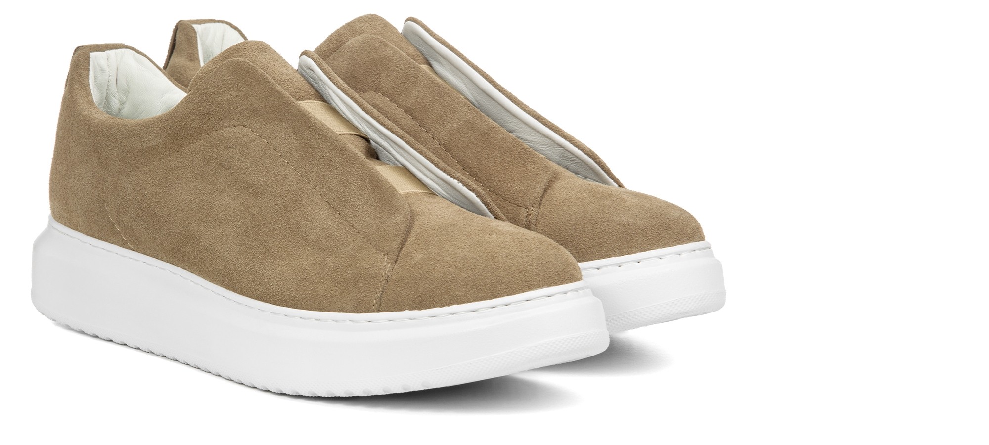 Dynamic and innovative, the new GuidoMaggi slip-on sneaker is the season's must-have. The upper in soft suede, in the shade of beige characterized by elastic. With an excellent fit, it is a model suitable for all your casual chic outfits