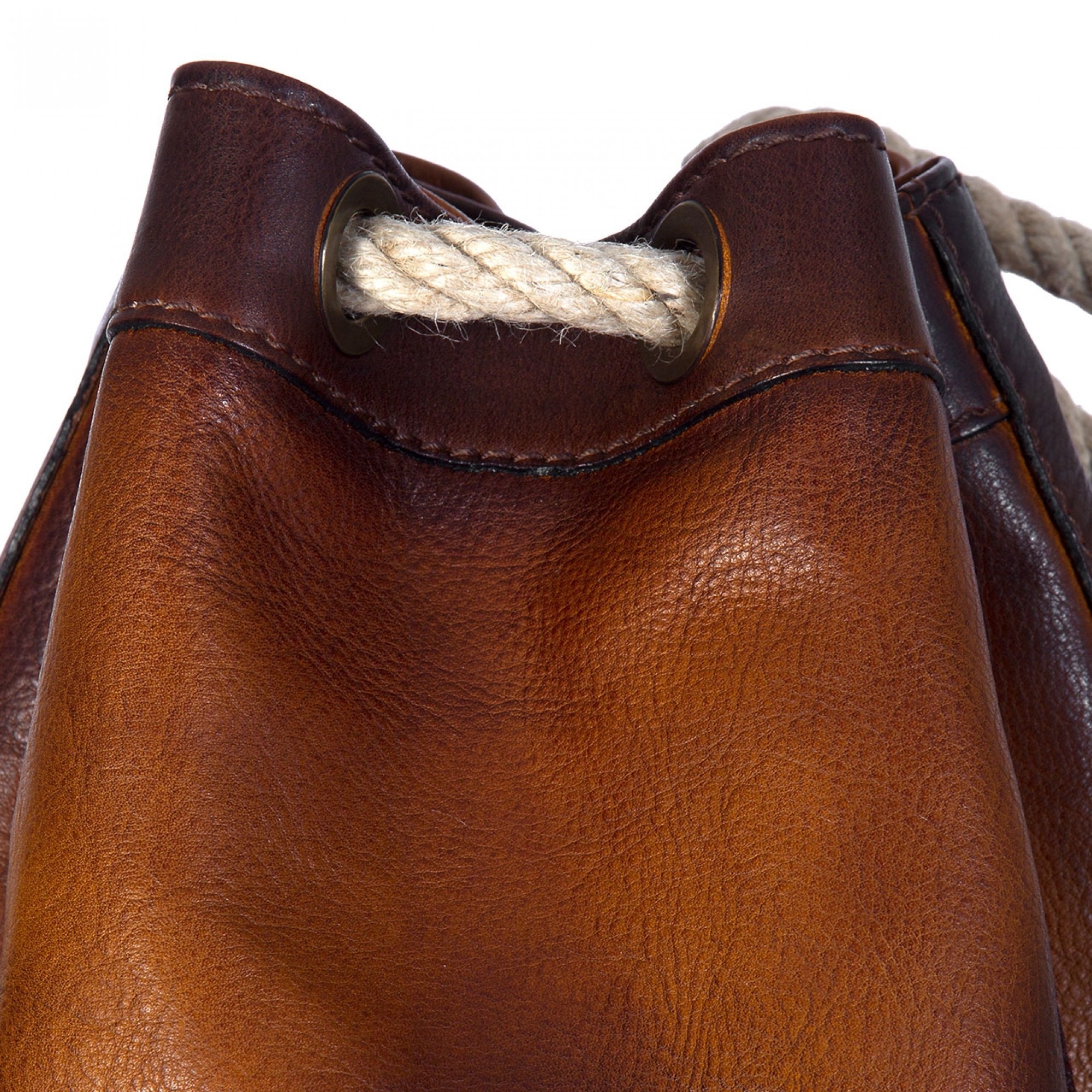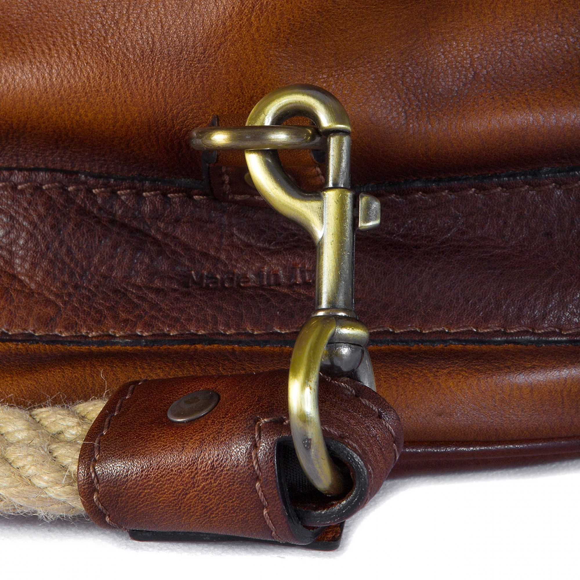 Externally a handy pocket to hold documents. The durable handle is made of rope. Handmade in Italy.