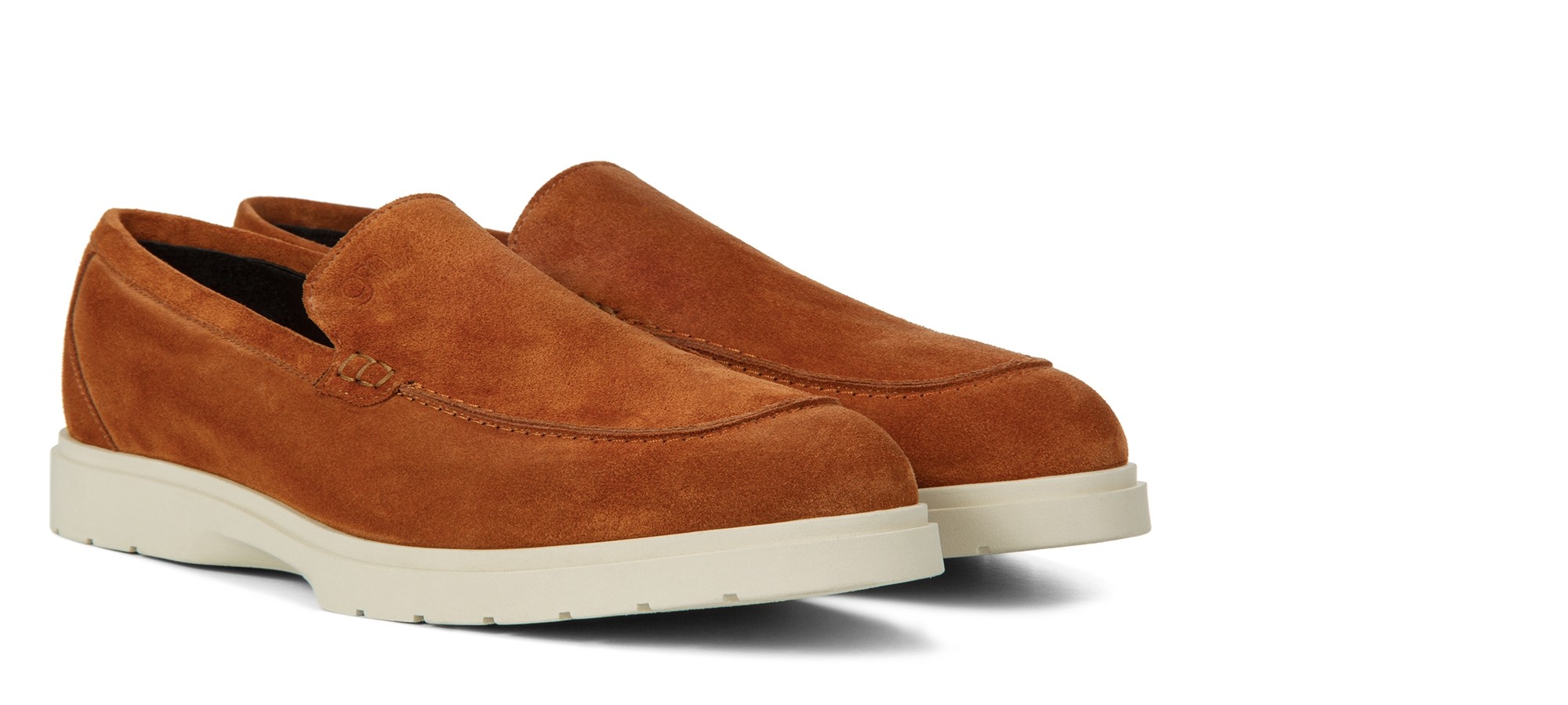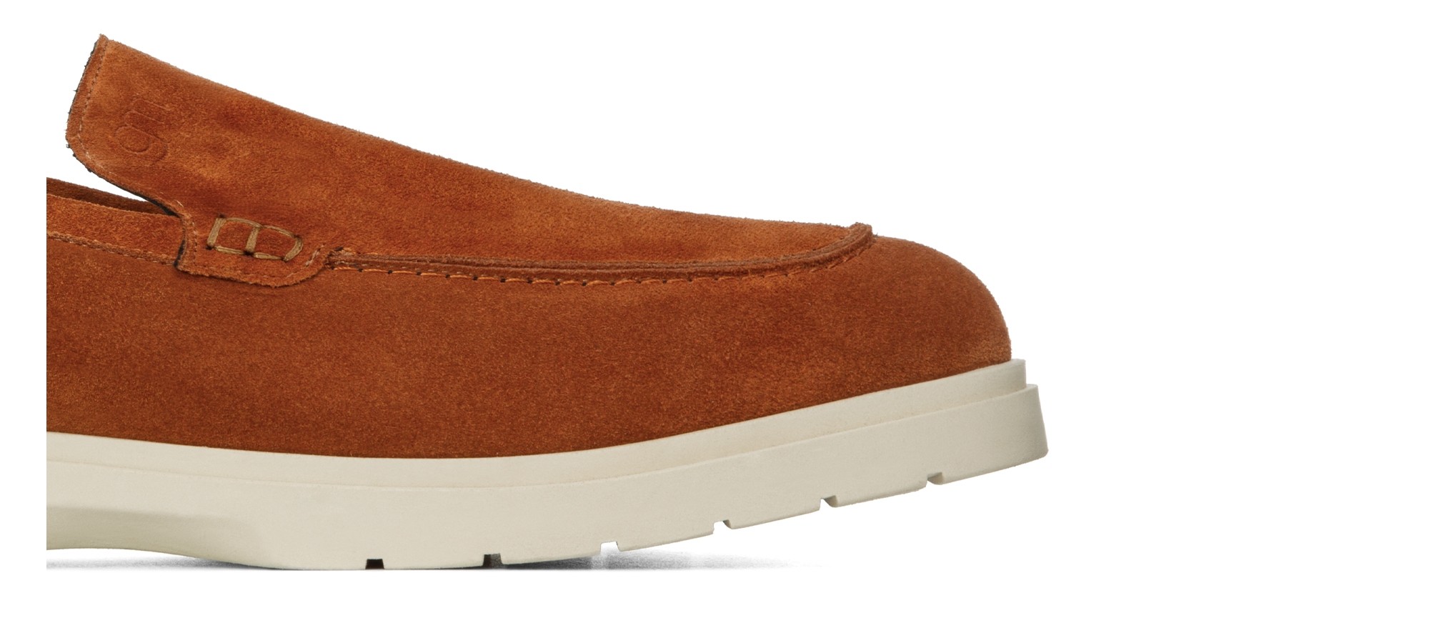 Brand-new slip-on loafer with a practical and modern spirit. Crafted from rich suede leather in an exlusive orange nuance and featuring the GM monogram embossed on the front, it pairs elegance with ease. The rubber sole ensures grip and all-day comfort.