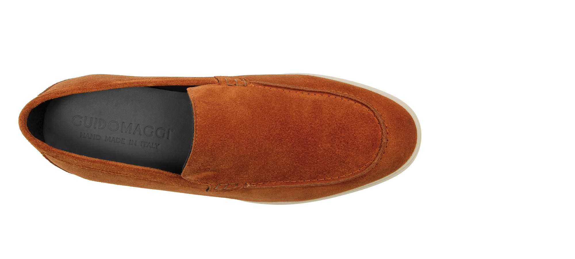 Handcrafted in Italy, it offers a laid-back yet refined look. Invisible internal elevator system adds up to 7 cm (2.75 in) in height.
